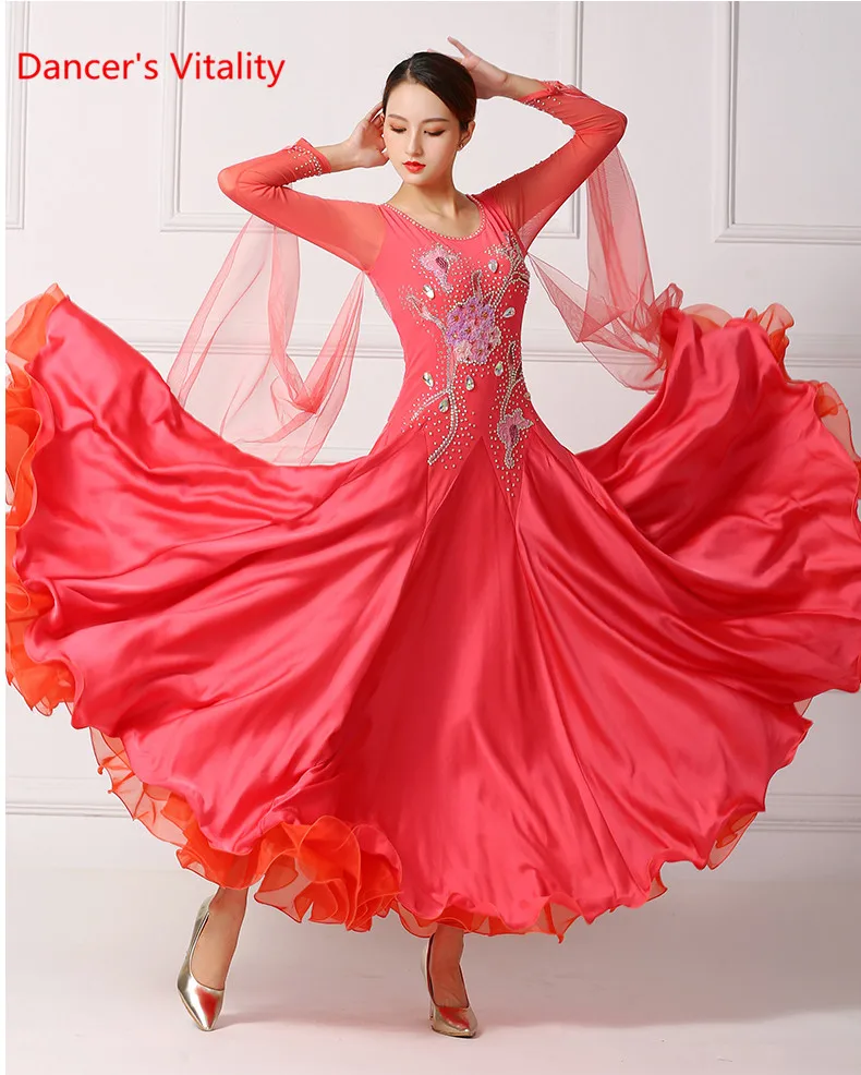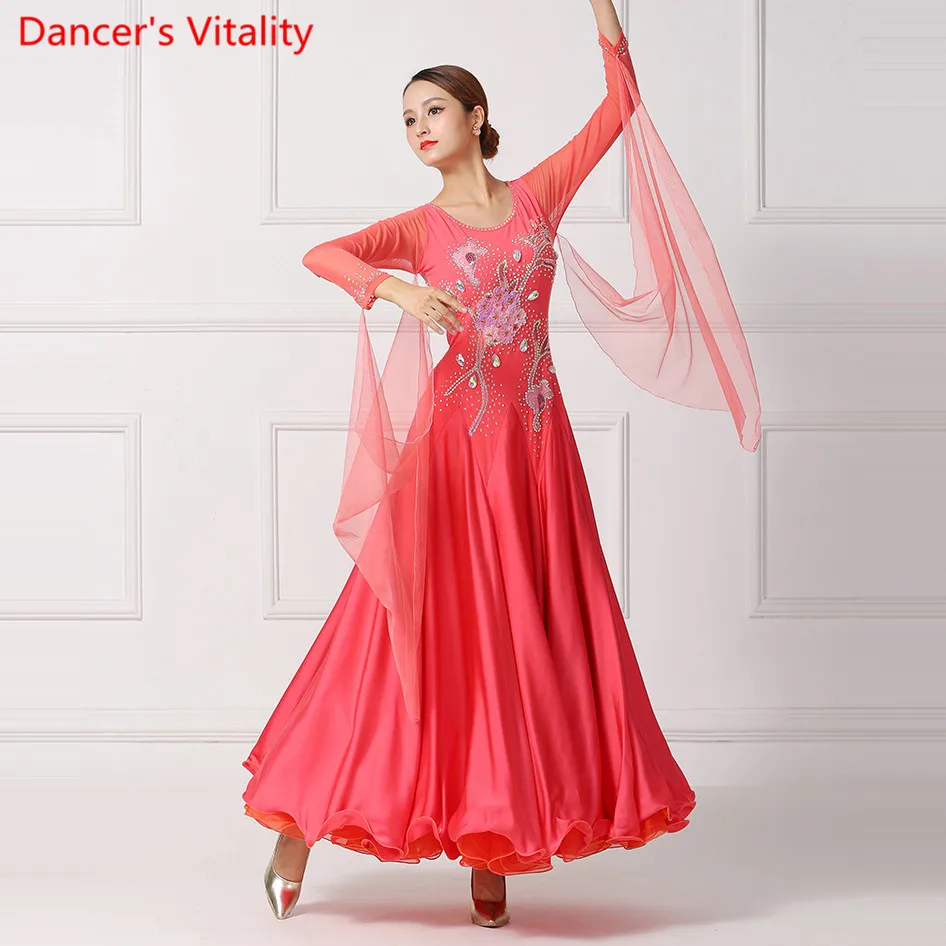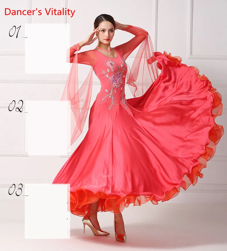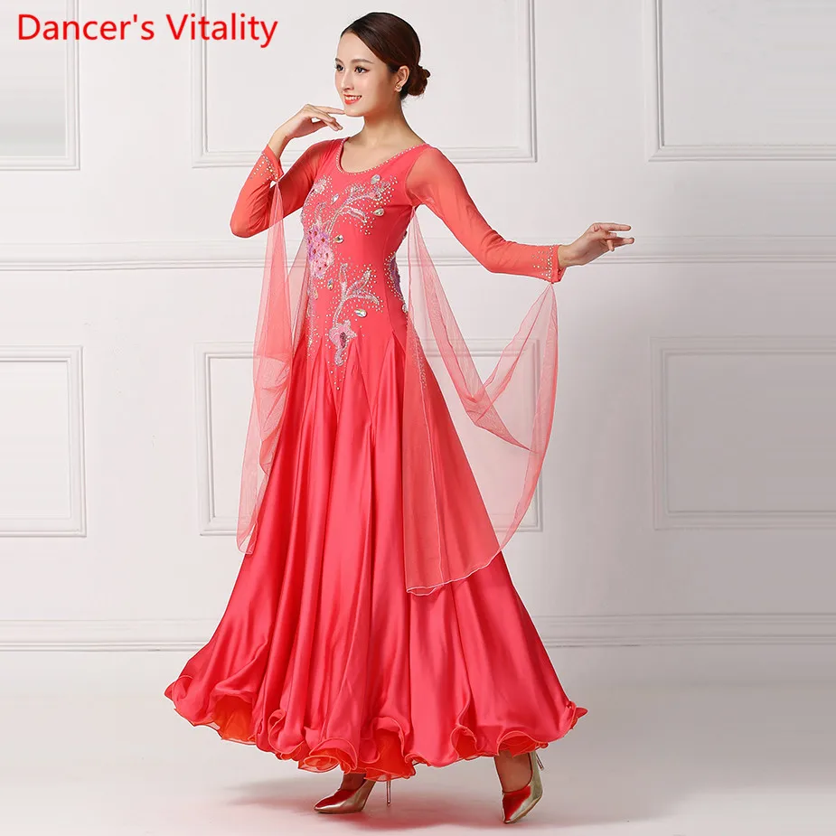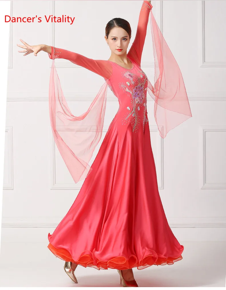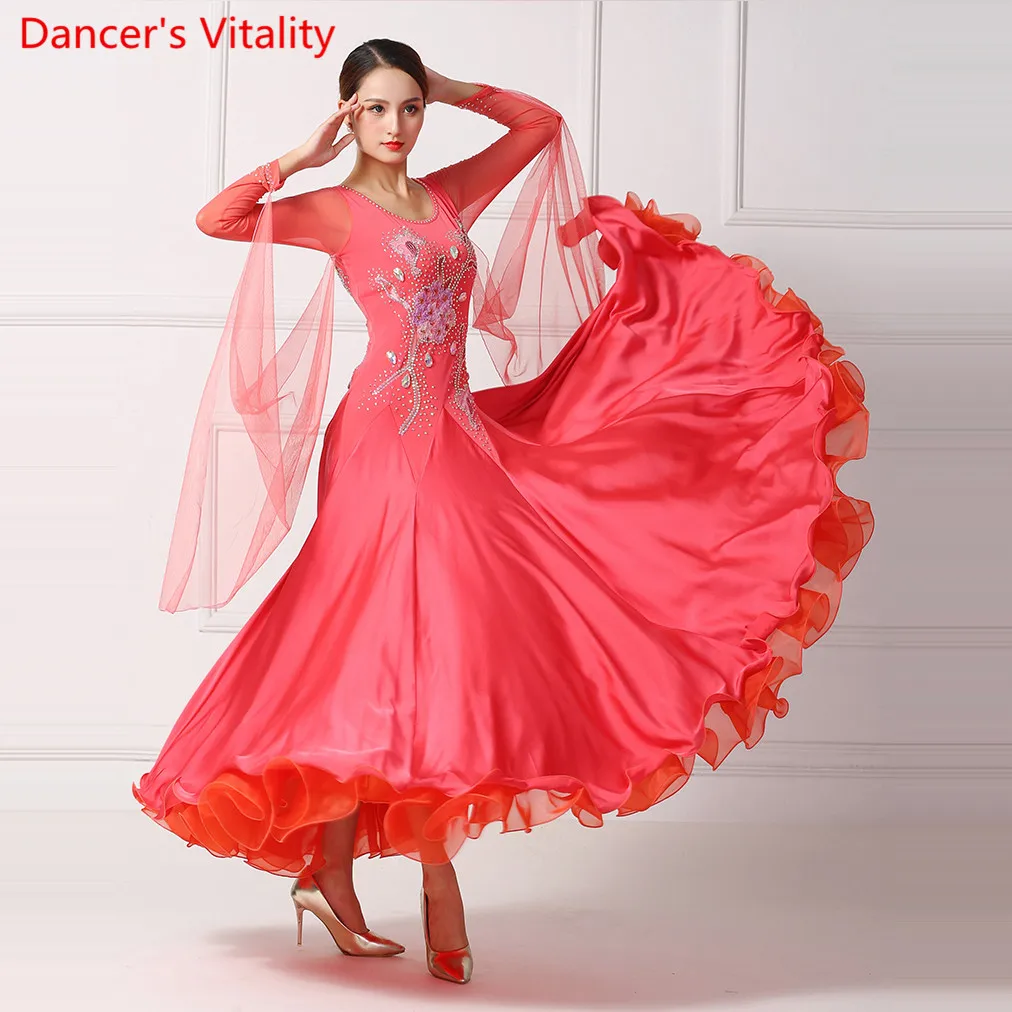 Национальный стандарт, танцевальная одежда для соревнований, женское платье с вышивкой, бальное платье с лентой, вальс, современный танцевальный костюм для выступлений