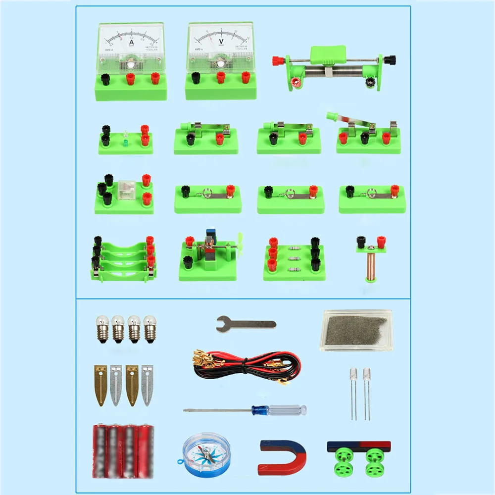 -Базовый набор для экспериментов по электричеству и магнетизму включает в себя все, что вам нужно для начала, обеспечивает практическую возможность для студентов 7-11 классов для создания простых электрических и магнитных моделей.