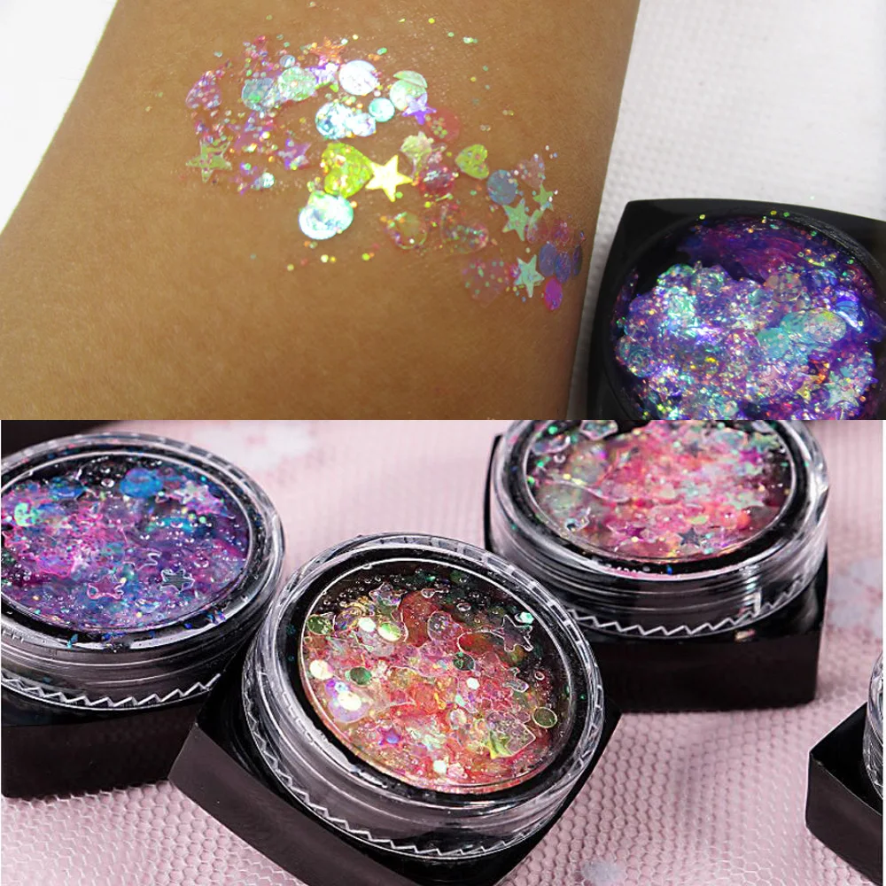 Holographic Iridescent Gel Glitter Sequins Body Art