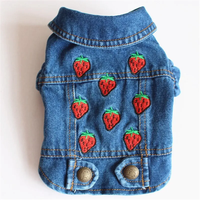 Новый дизайн вышитая клубника весенняя одежда для собаки на открытом воздухе для прогулок товары для собак Чихуахуа щенок для маленьких собак жилет одежда