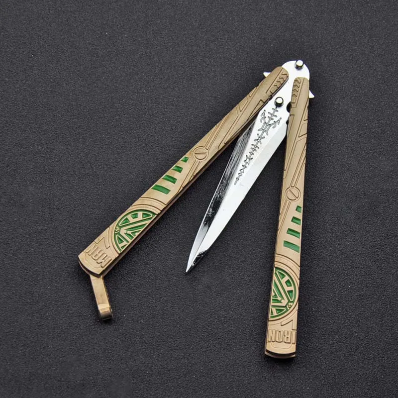 Уважаемый: этот нож-бабочка-это просто модель, которую нельзя разрезать! Нету опасности! Полный нож из цинкового сплава, изысканное мастерство, отправляется студентам. Лучший выбор для отправки друзьям! Длина лезвия: 9 см Ручка: 12 см Полная длина (открытая): 21 см