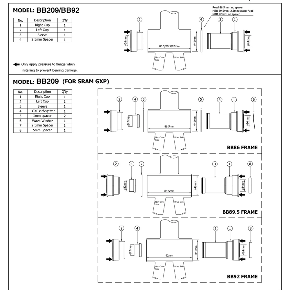 Для: SHIMANO 24/24 мм и SRAM GXP 24/22 мм диаметра окружности болтов Для: BB 86/90/92 мм 41 рамка Корпус