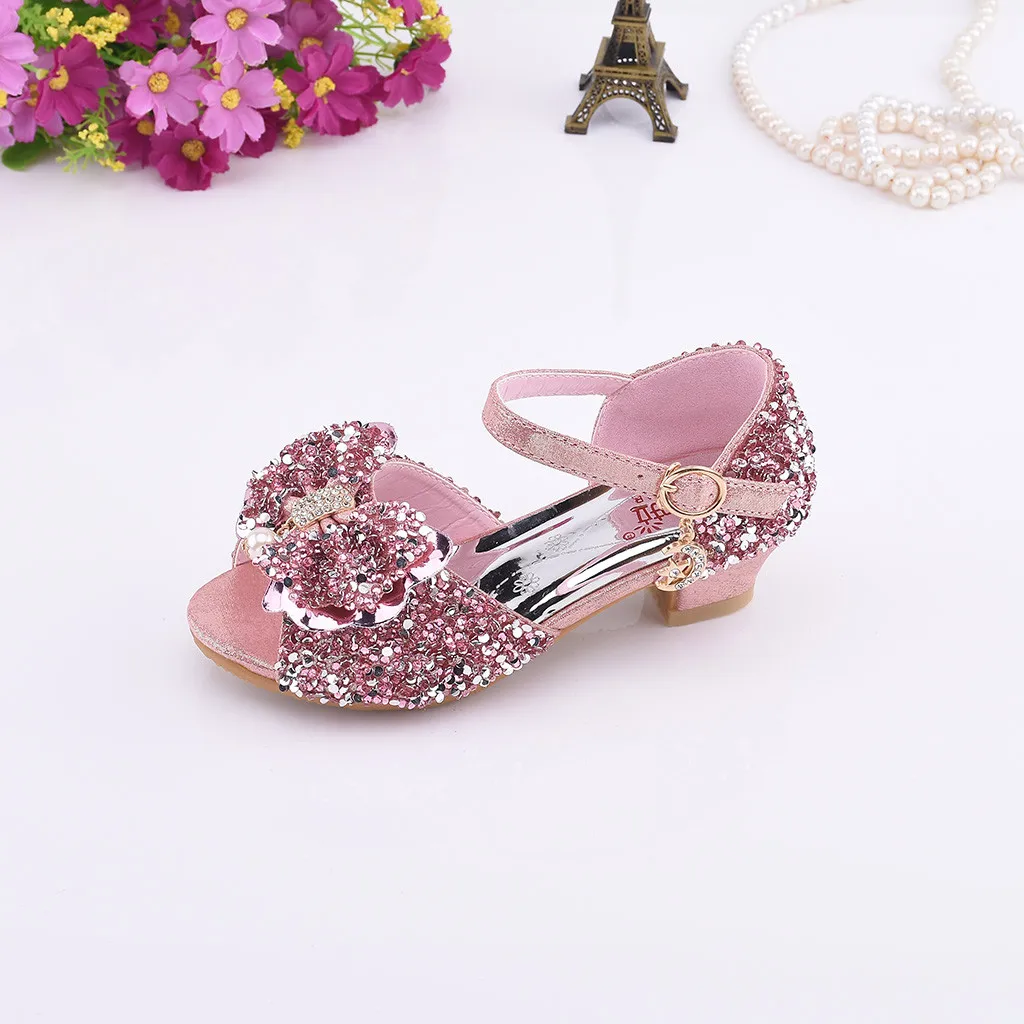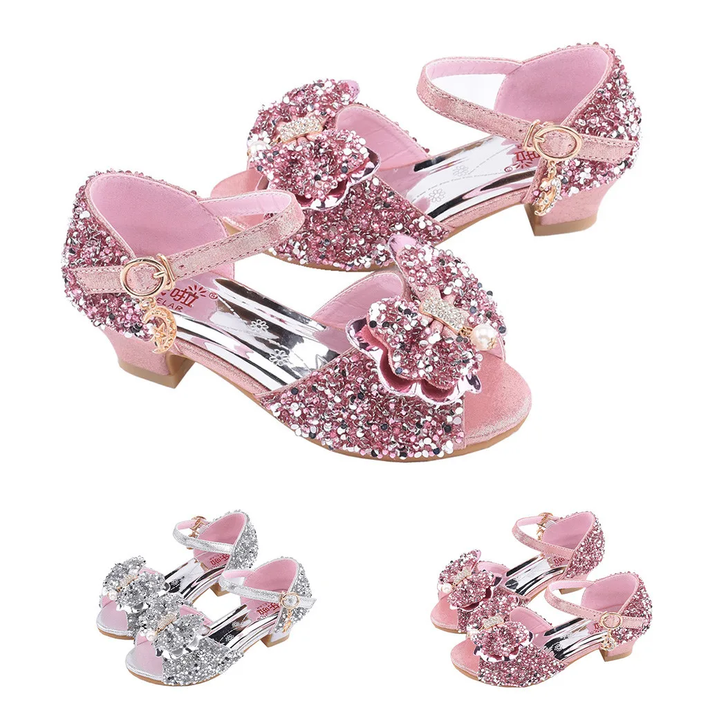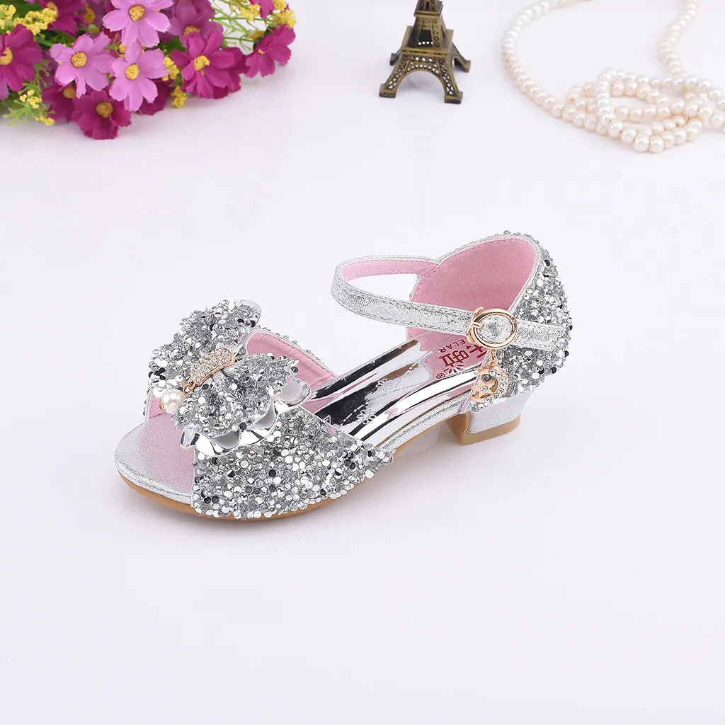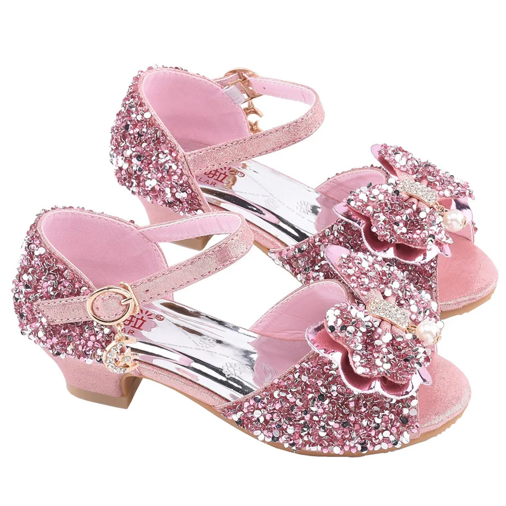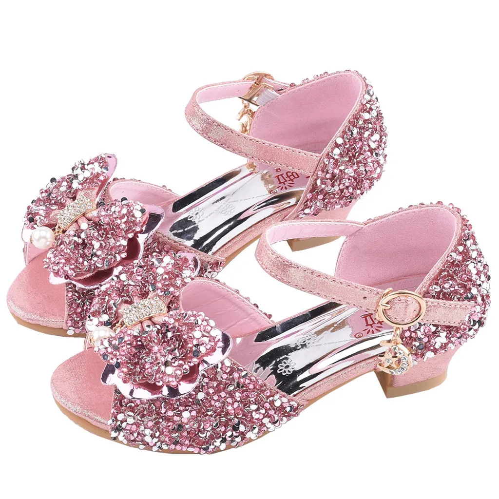 Сандалии; Обувь принцессы для девочек; Обувь для маленьких детей с жемчугом и бантом-бабочкой; Шикарная обувь для танцев; Бант с пайетками; Кожаные сандалии; Zapatos
