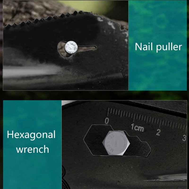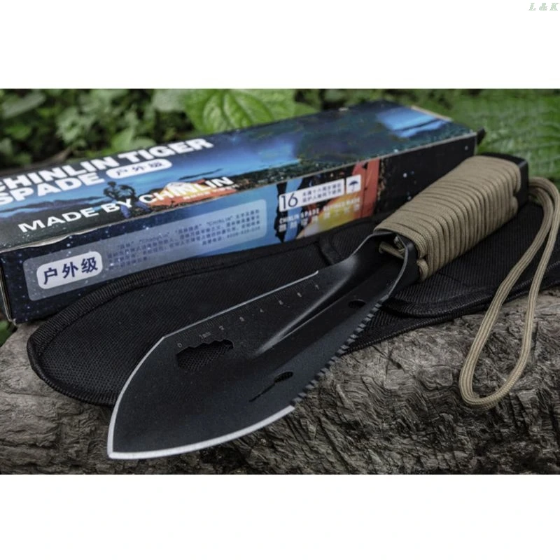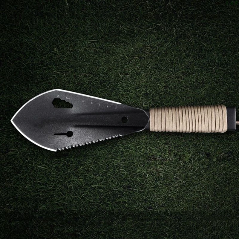 4. Специальный материал из углеродистой стали с различными функциями, распиловка, резка, резка, лопата, гаечный ключ, гвоздь, линейка, защитное копье, до 8 видов, ручка зонта используется для связывания, интегрированного дизайна, избежать царапин.
