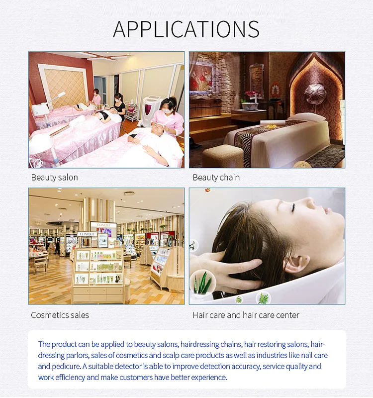 Благодаря этому детектору кожи вы можете понять чистоту кожи головы, влажность кожи, текстуру кожи, свойства кожи, проблемы с кожей.