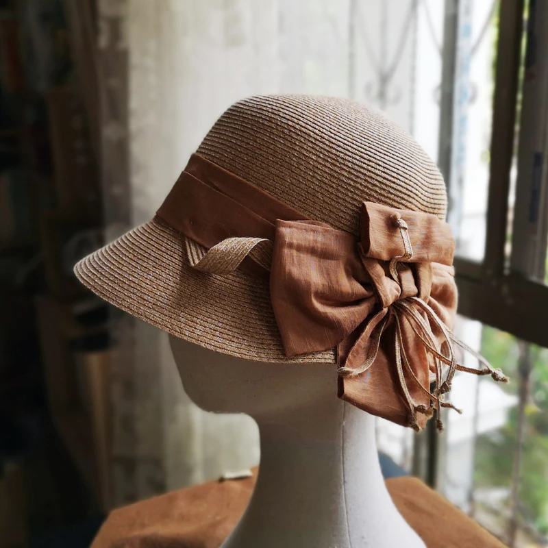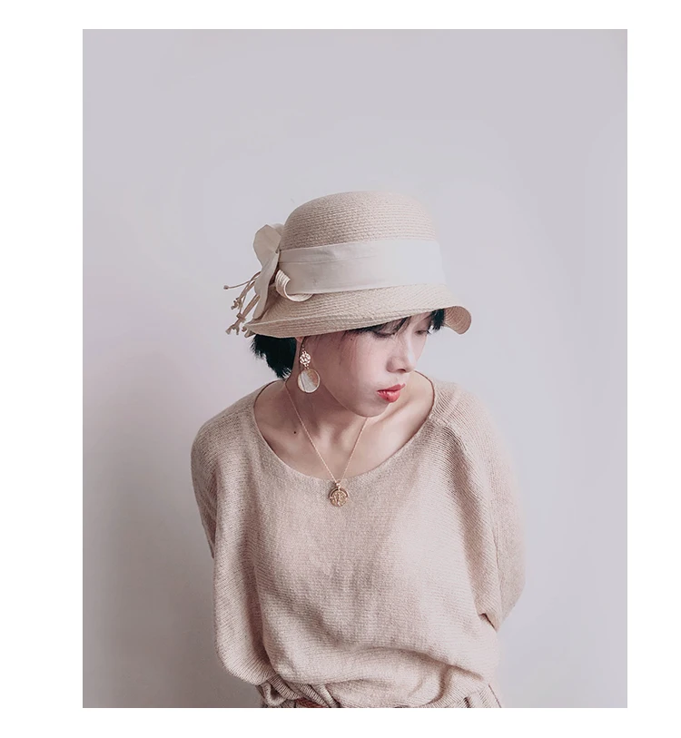 Женская соломенная шляпа Luna & Dolphin, летняя соломенная шляпа ручной работы с большим бантом, Пляжная соломенная Кепка верблюжьего и серого цвета для девочек, элегантный флоппи-топ с козырьком