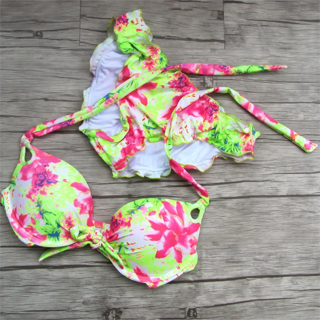 Цветочный принт вырезается случайным образом, поэтому каждое бикини с цветами разные позиции.