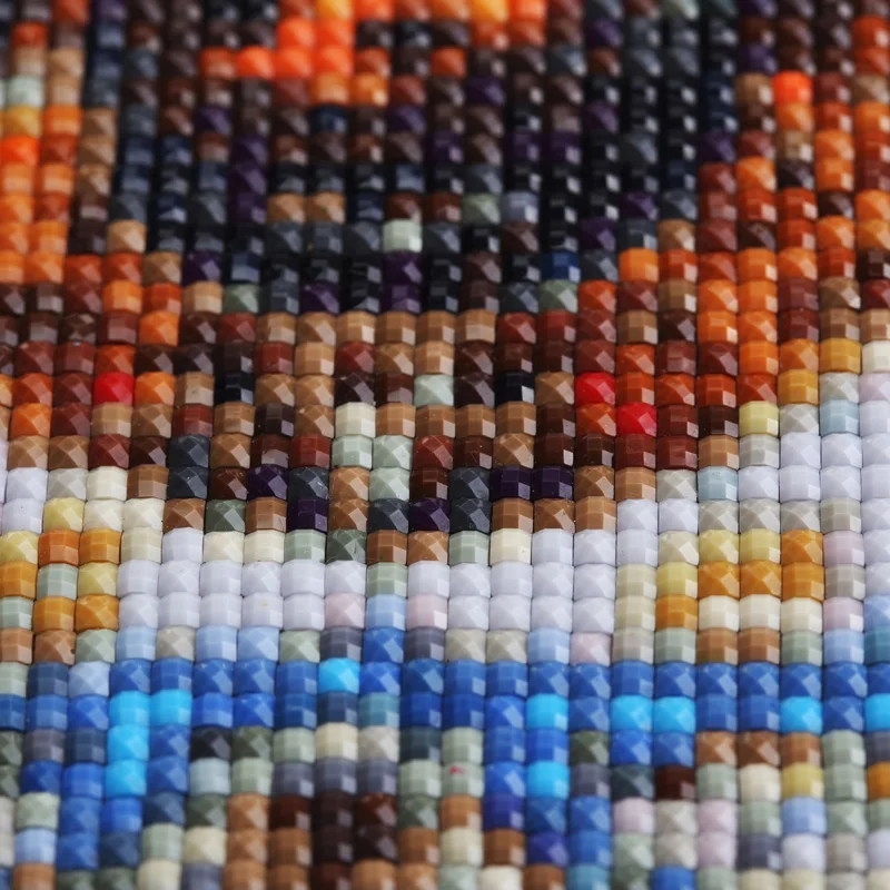 Чем больше размер, тем лучше эффект! Каждый размер алмаза: 2.5x2.5мм. Если изображение сложное, маленький размер будет не очень хорошим! Если вам нужен большой размер любых фотографий, пожалуйста, свяжитесь с нами!