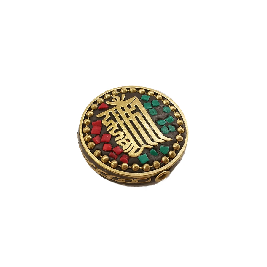 Ретро латунные этнические плоские круглые Непальские металлические инкрустационные Бусины бусины в тибетском стиле античные золотые тибетские глиняные подвески для самостоятельного изготовления ювелирных украшений в стиле бохо