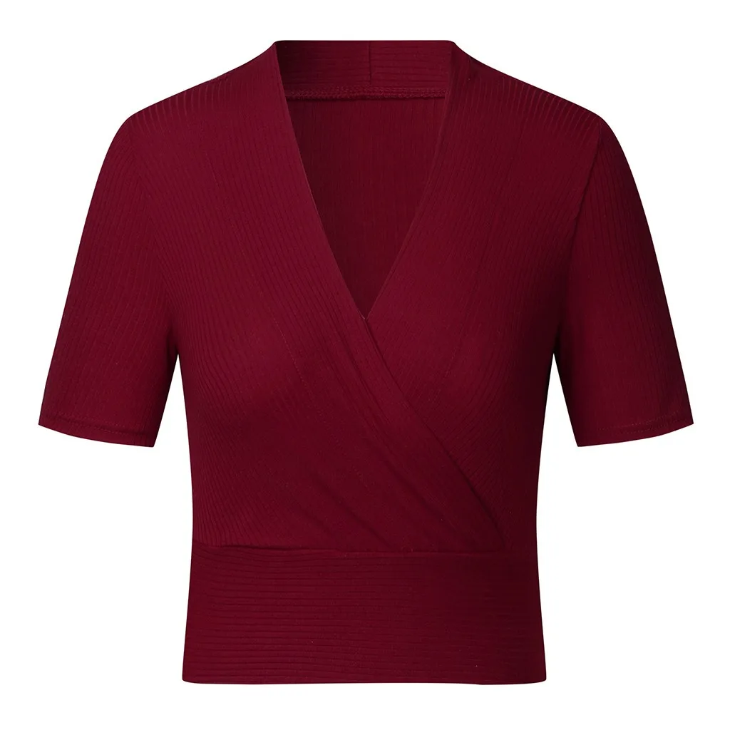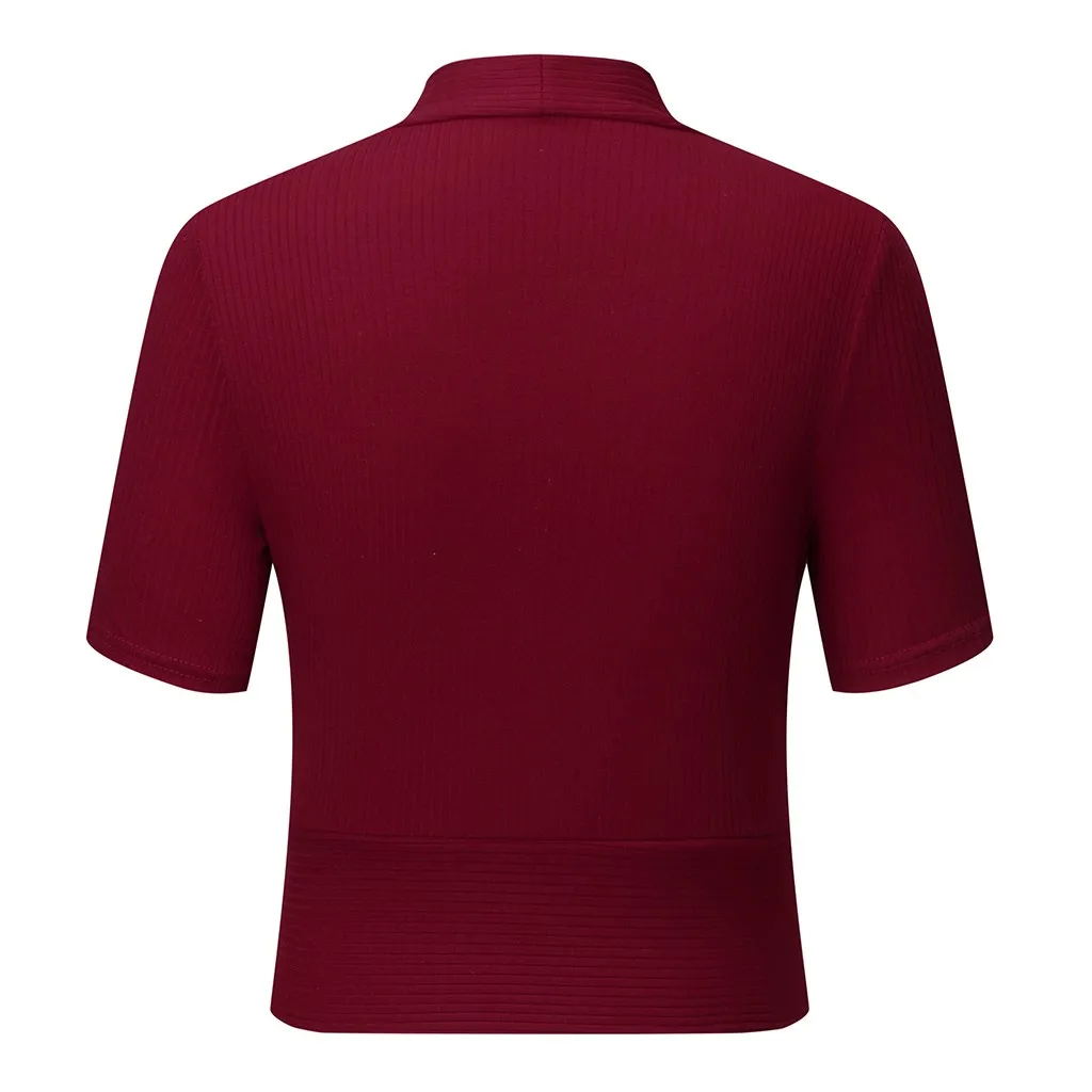 Женская Летняя Сексуальная Повседневная однотонная повседневная трикотажная Праздничная рубашка с v-образным вырезом, топы