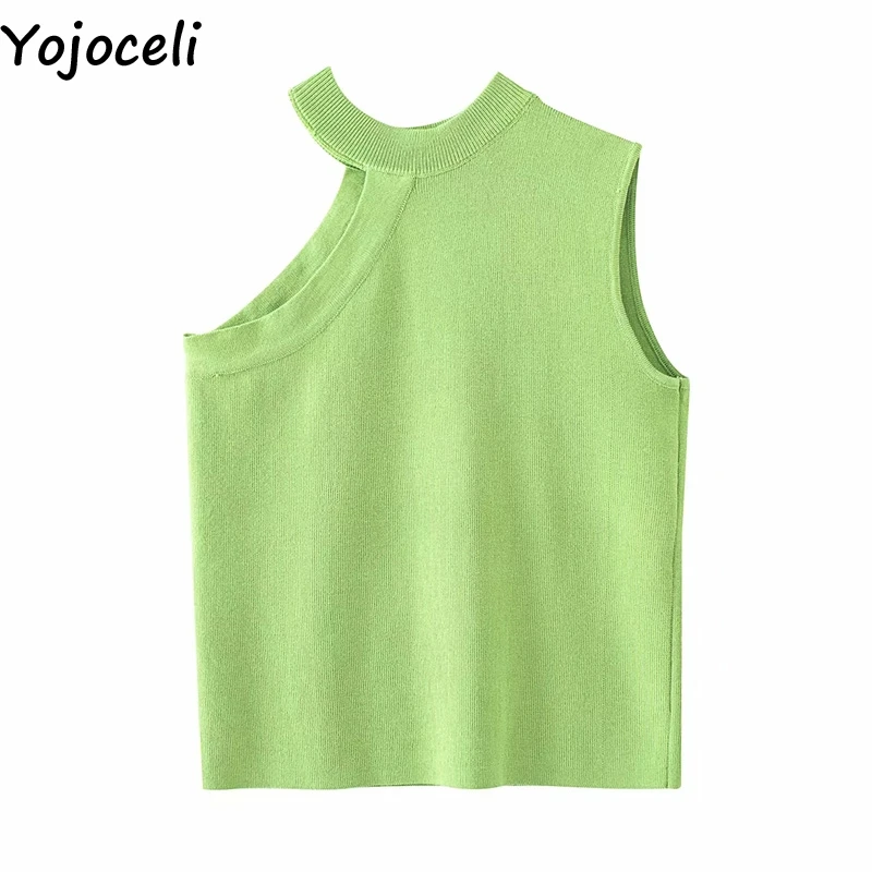Женский укороченный топ Yojoceli, зеленый вязаный Топ без рукавов на лето и весну, Повседневная Блузка для повседневной носки