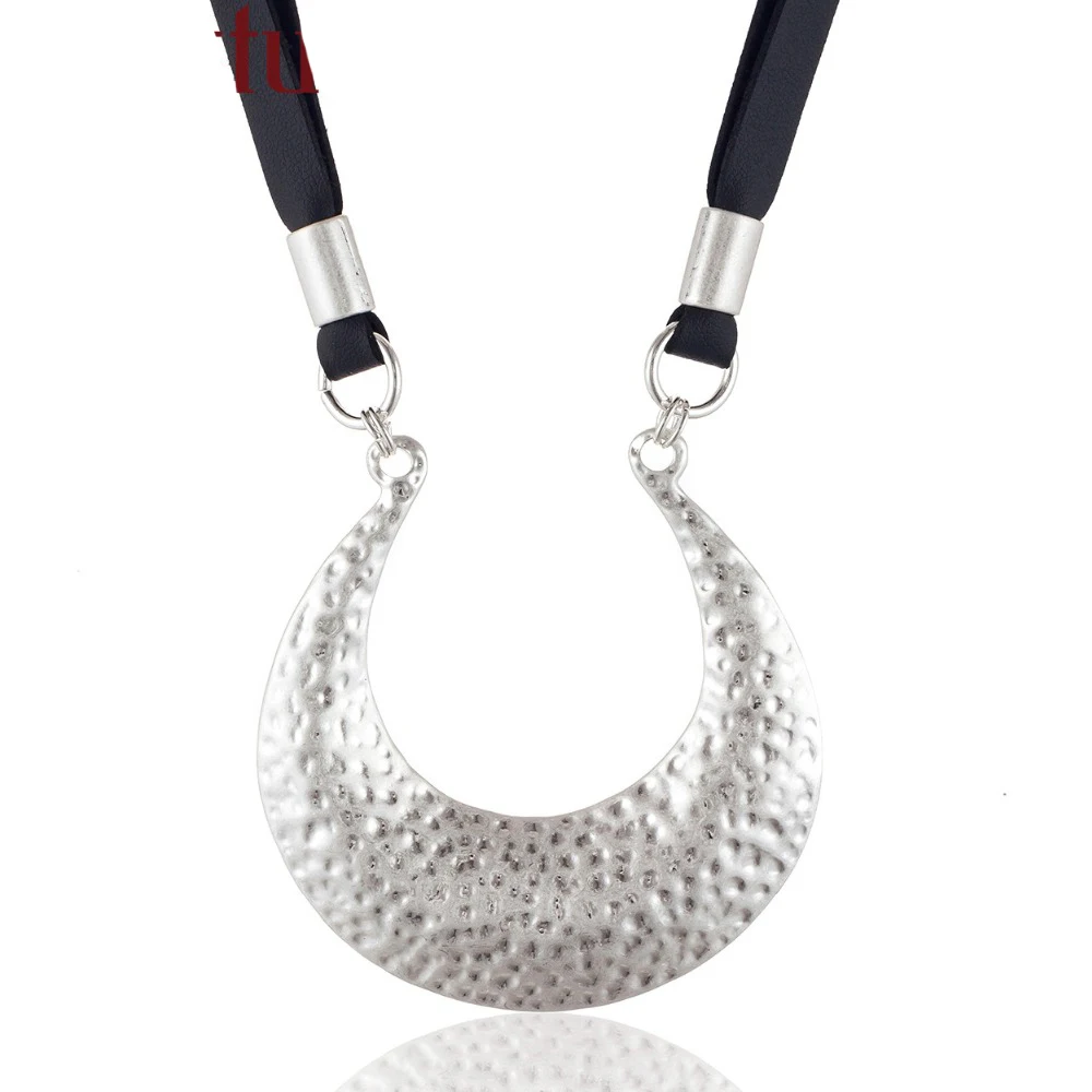 Массивное ожерелье-чокер для женщин, ювелирные изделия модного серебристого цвета, кулон, черное ожерелье из кожаной цепи и кулоны, ювелирные изделия 2022