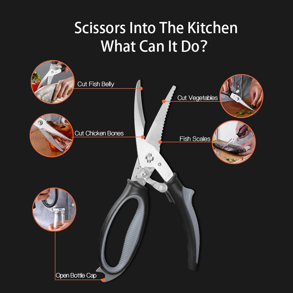 XYj кухонные ножницы сверхмощные ножницы из нержавеющей стали, для курицы, мяса, еды, 9,4 дюйма-высокое качество антипригарная пластиковая ручка