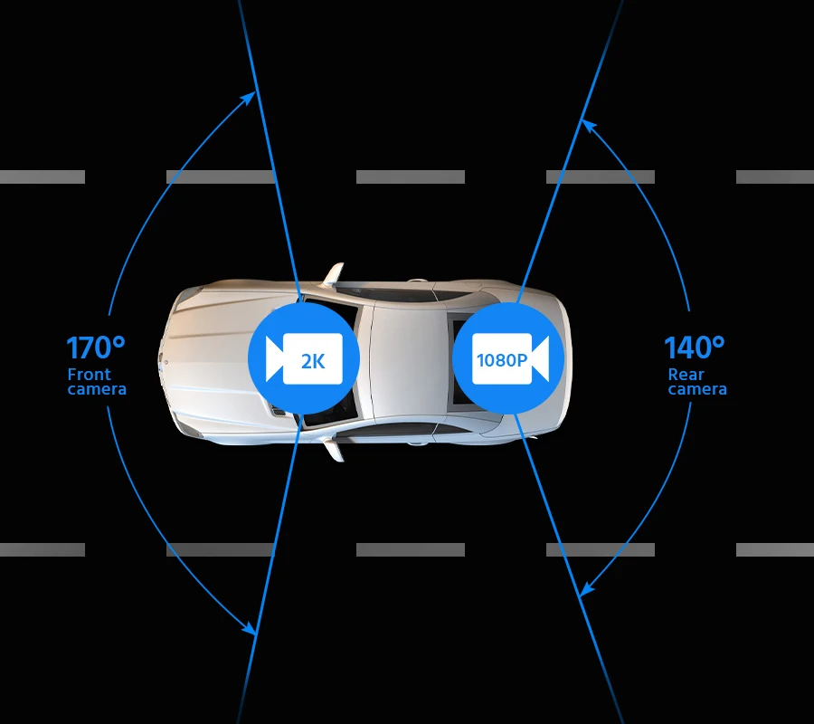 Датчик изображения передней камеры-Sony IMX335, а качество 6-объективов обеспечивает недеформирующиеся изображения, а также широкий угол обзора 170 °, фиксирует изображение всей дороги в высоком разрешении 1440 P.