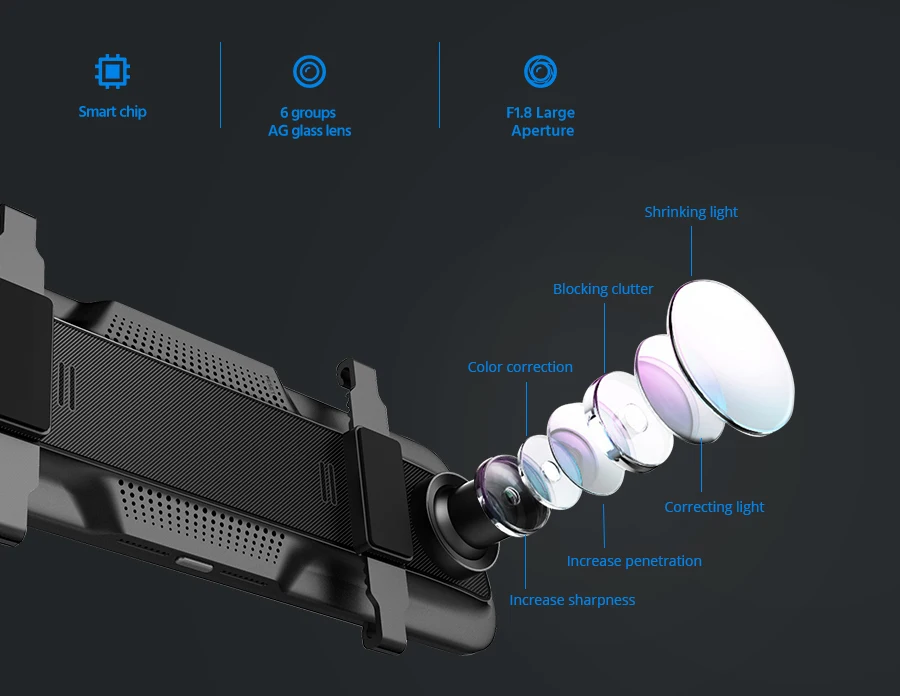 10-дюймовый сенсорный экран, более удобный в эксплуатации, вы можете очень быстро управлять камерой автомобиля, так что вы безопаснее в вождении.