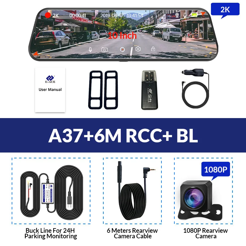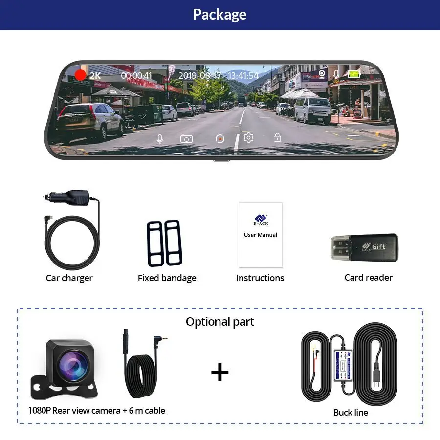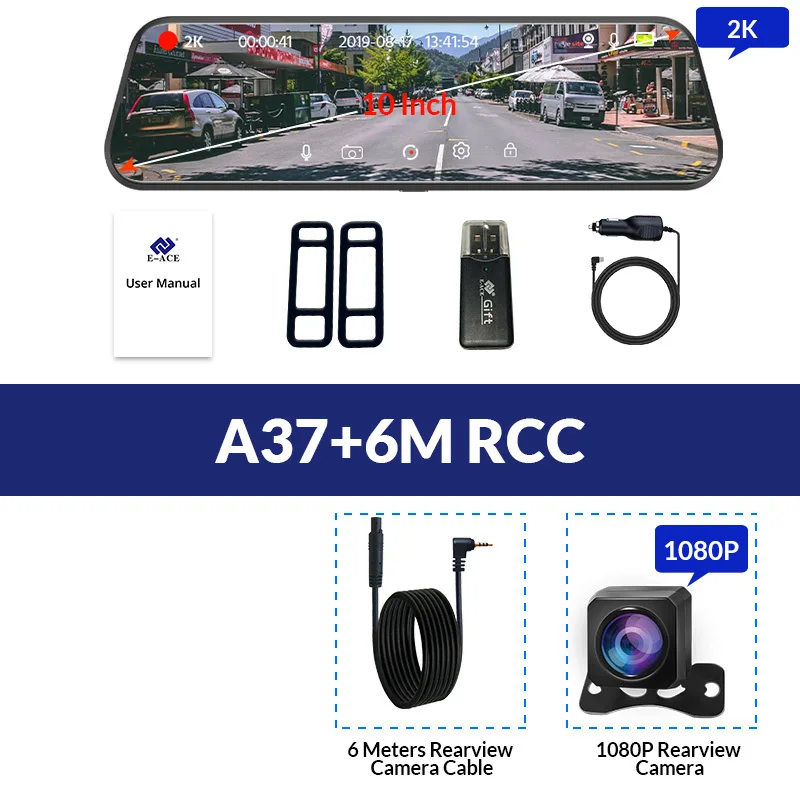 E-ACE A37 потоковое зеркало заднего вида Автомобильная Dvr камера FHD 2 K + 1440 P видео регистратор ночное видение циклическая запись видеорегистратор