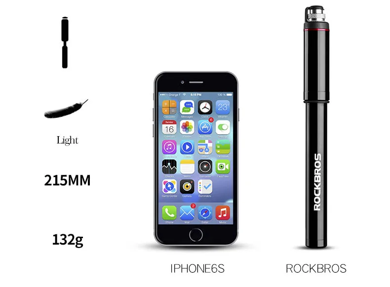 Бренд: ROCKBROS Название: мини портативный насос для велосипеда Материал: алюминиевый сплав + ЧПУ Размеры: насос Длина: около 21,5 см Цвет: черный