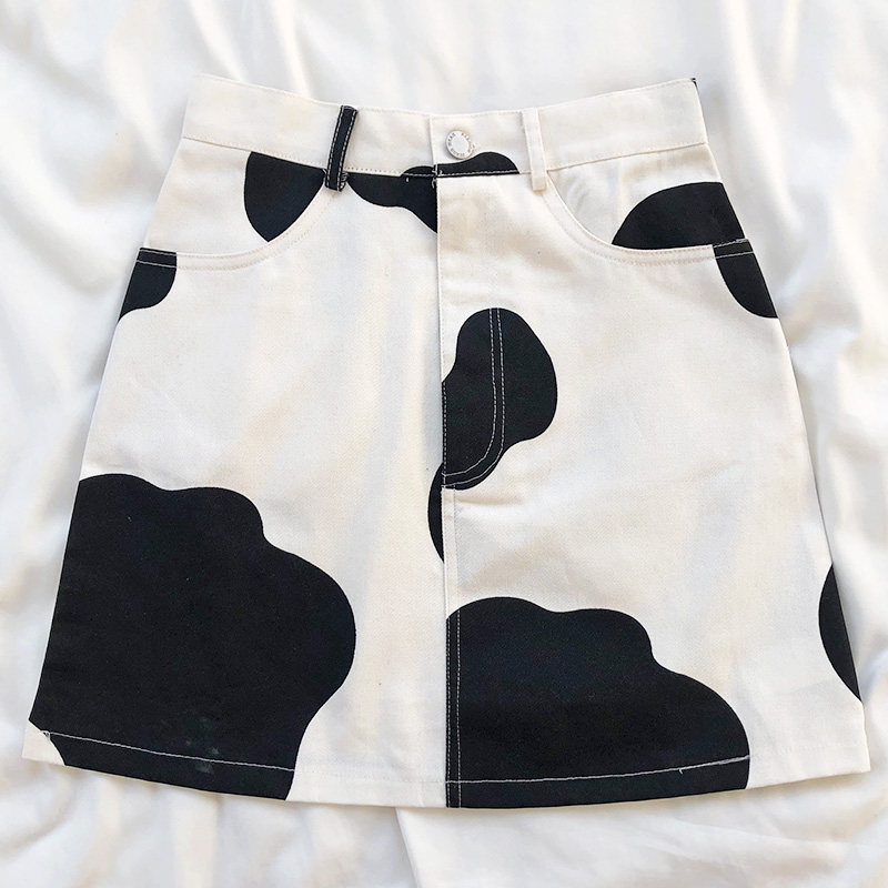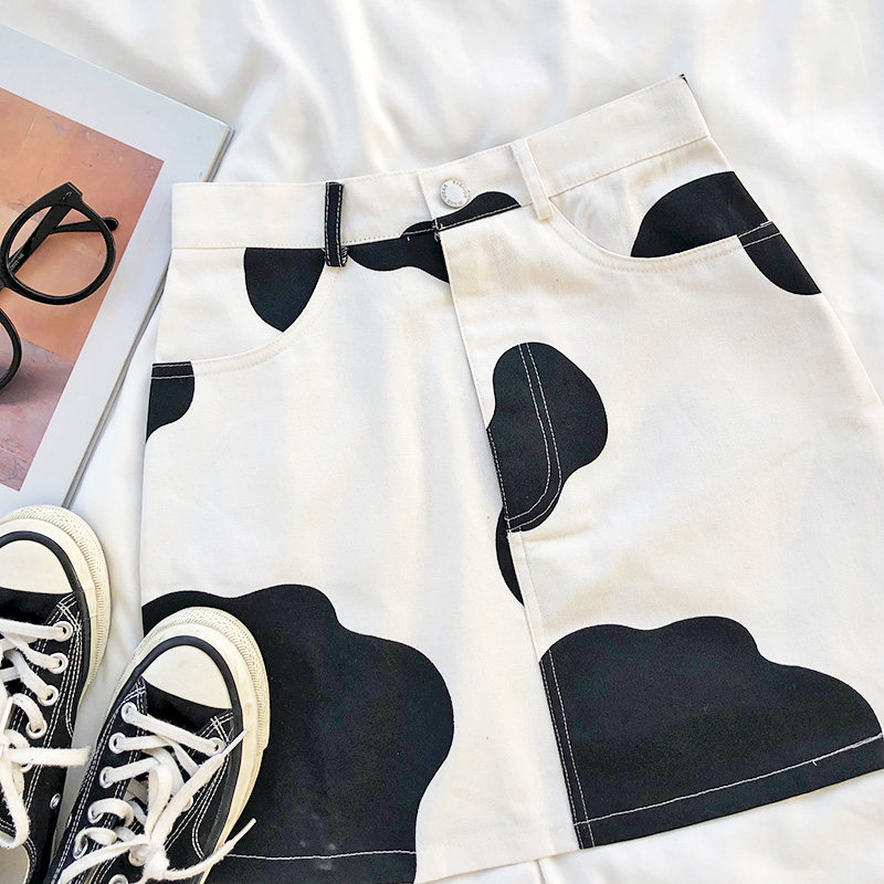 Женская винтажная короткая мини-юбка трапециевидной формы с принтом в стиле граффити, черно-белая юбка с завышенной талией