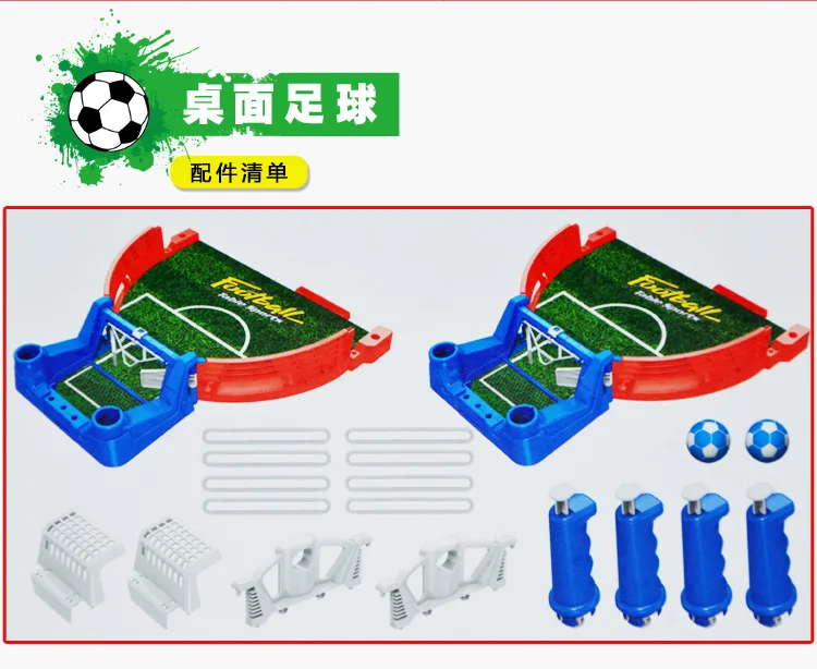 Аксессуары: футбольный стол * 1, футбол * 2, резинка * 8, ручка * 4, цель * 2, забор * 2