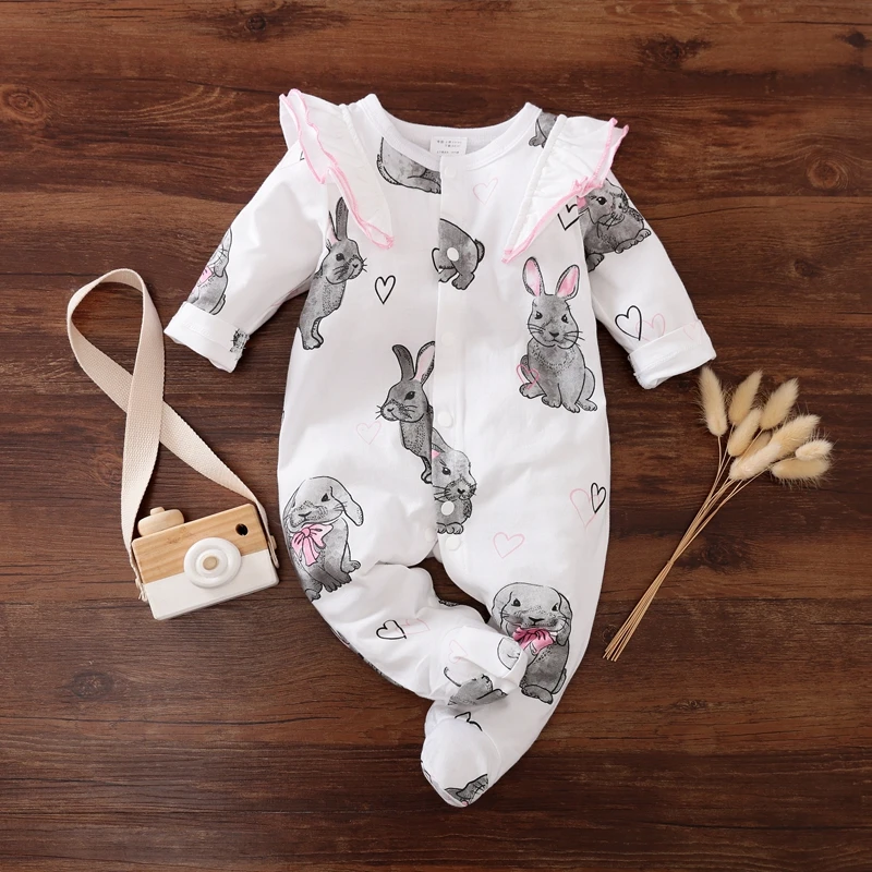 Комбинезон с длинными рукавами и принтом кролика для маленьких девочек