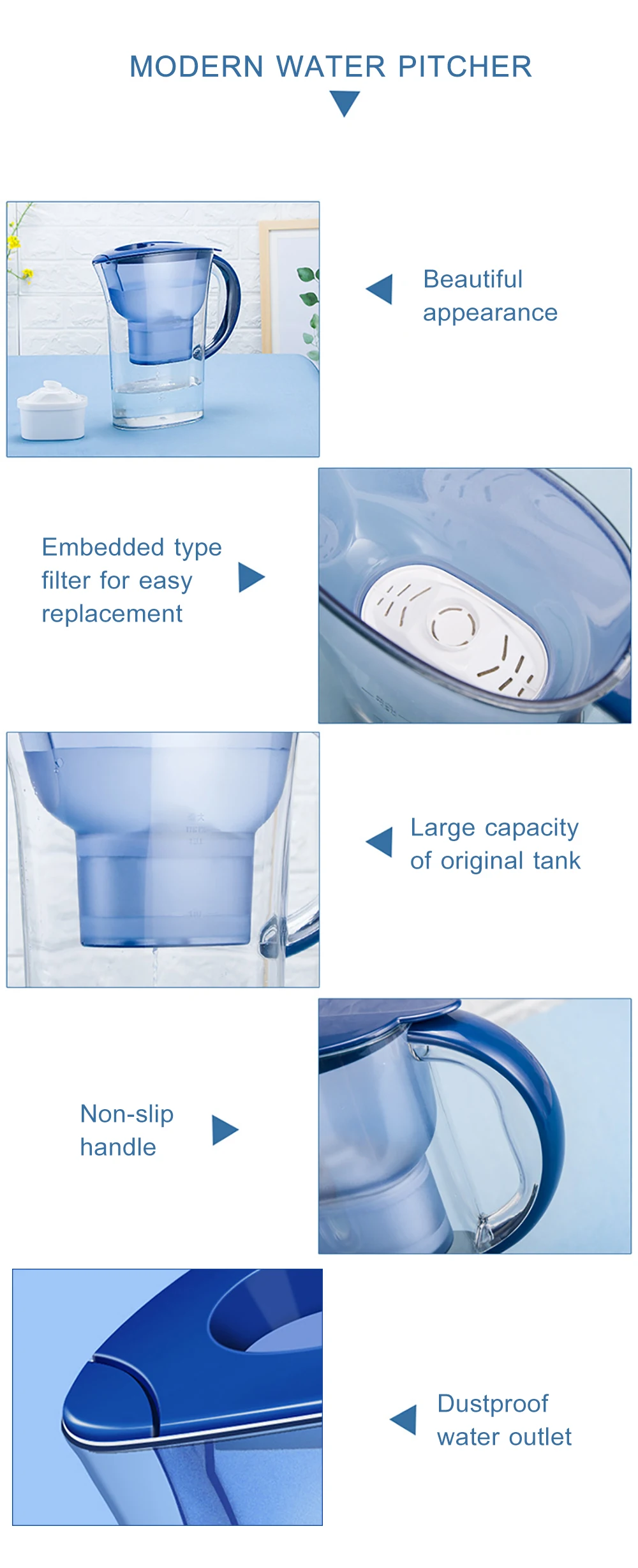 Кувшин для воды обладает отличной производительностью при удалении загрязняющих веществ, обеспечивая вам очиститель и лучшую дегустацию воды. Идеальный очиститель воды расположен дома! Обеспечьте вам здоровый и безопасный стиль жизни.