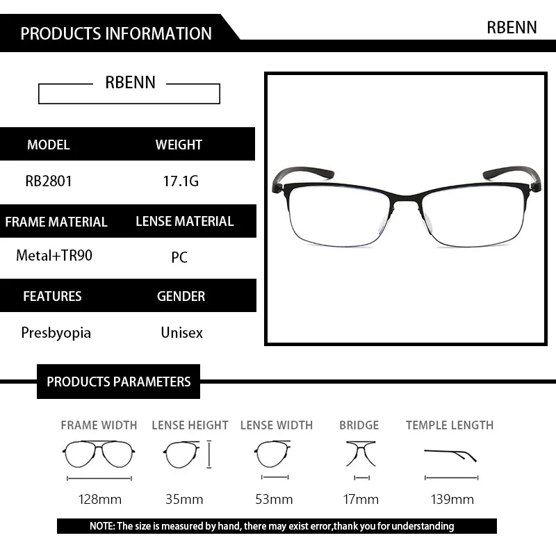 Ульсветильник кие мужские очки для чтения RBENN TR90 с защитой от сисветильник, металлическая оправа, очки для дальнозоркости с диоптриями + 0,75 1,25 1,75 2,25 4,5