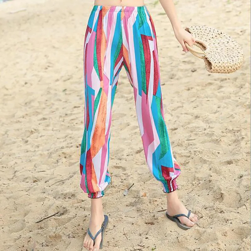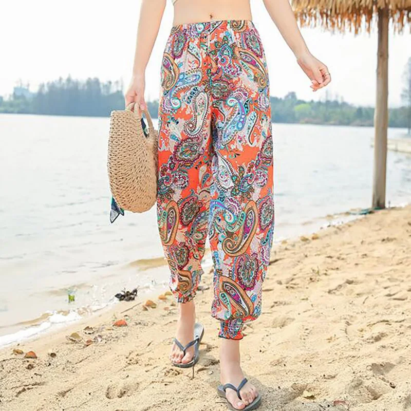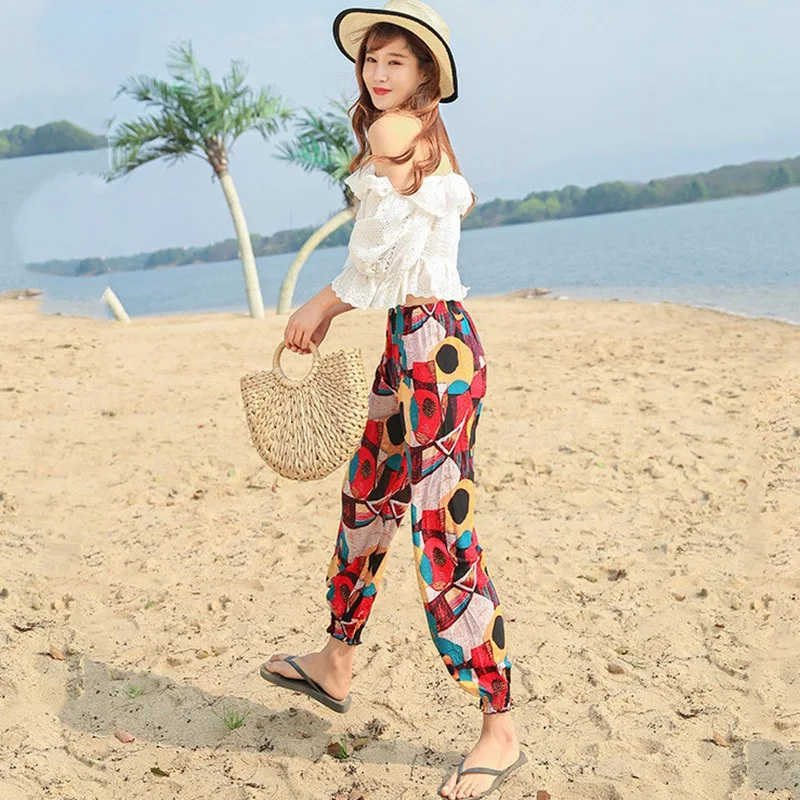 Особенности: для женщин; Пляжные брюки; Летние; Из хлопка и шелка; Тонкие; В стиле бохо; Шаровары