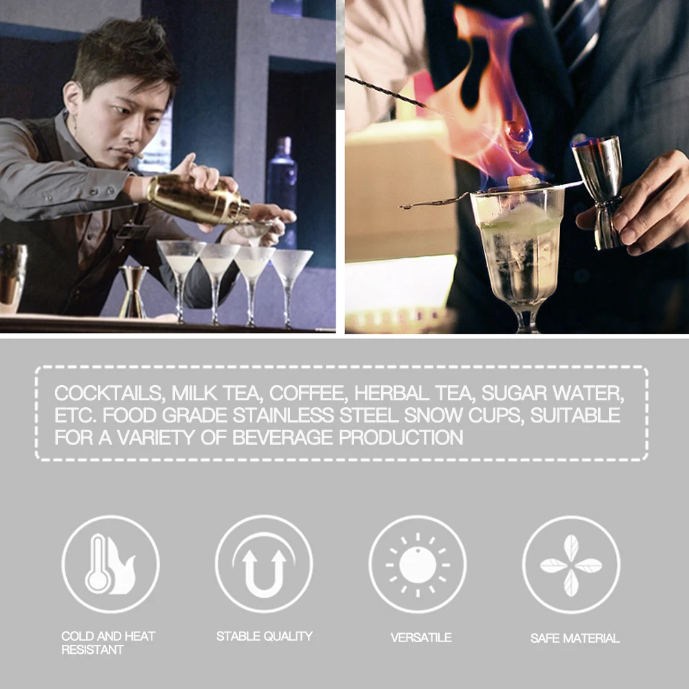 Сделать красивые коктейли комфортно в вашем собственном доме или в баре. Комплект не только стильный и завораживающий, но и профессионально разработанный для длительного использования! Все детали изготовлены из высококачественной нержавеющей стали, чтобы гарантировать, что они не будут ржаветь, течь или терять высокое качество во времени
