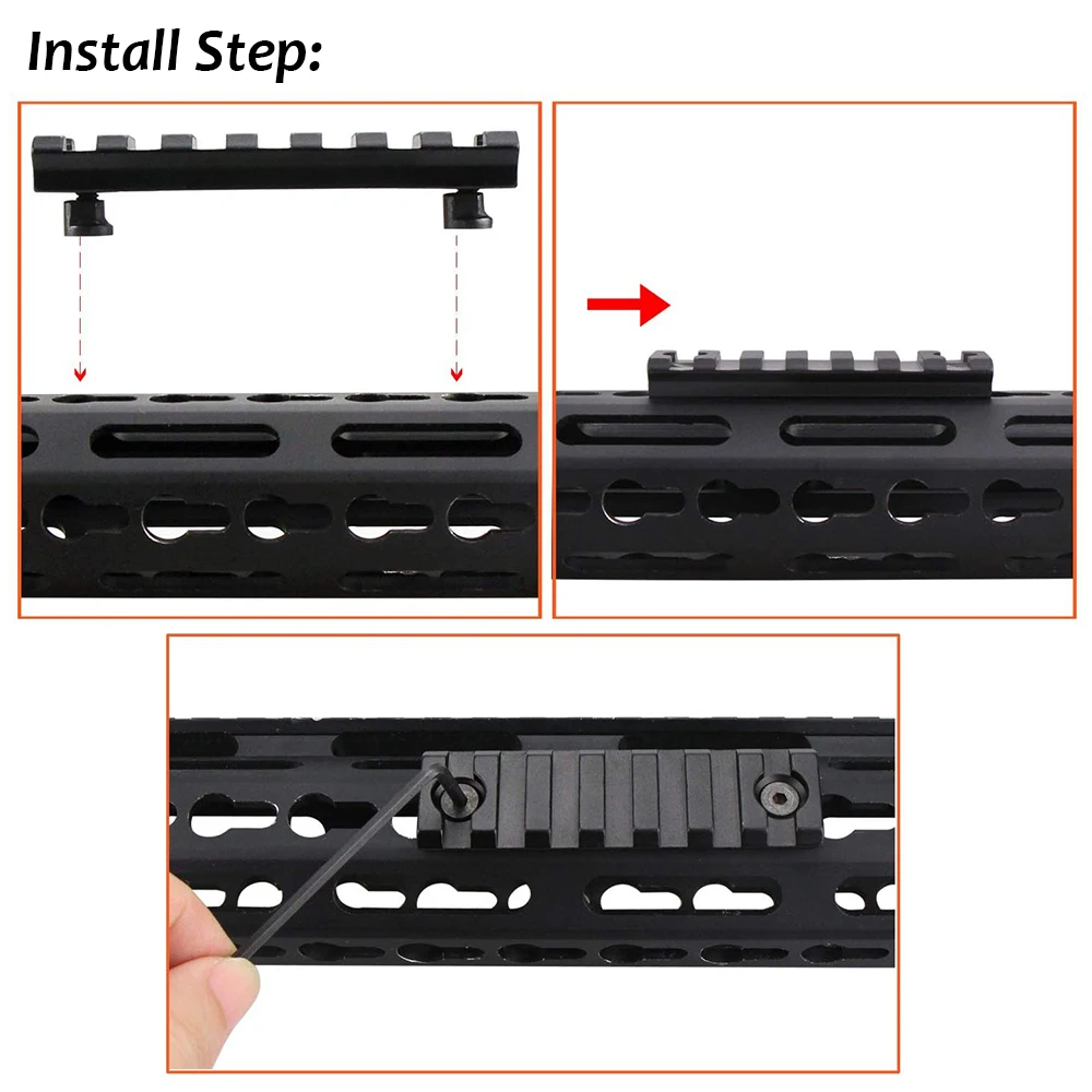 -Простота установки, Рельс быстро устанавливается на любую универсальную платформу Keymod, что позволяет быстро установить модульные захваты, штативы, прицелы или другие аксессуары.