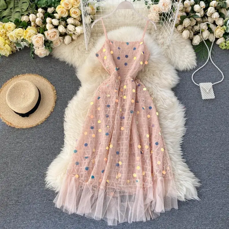 Brand NameNoneModel Numbertb ly60MaterialPolyesterStyleBohemianSleeve Length(cm)SleevelessPattern TypeSolidSleeve StyleSpaghetti StrapDecorationSequinedSilhouetteA-LINEWaistlineempireDresses LengthKnee-LengthSeasonSummerNecklineV-NeckMeasurement unit100000015Each pack1Waist TypeHigh Waist
