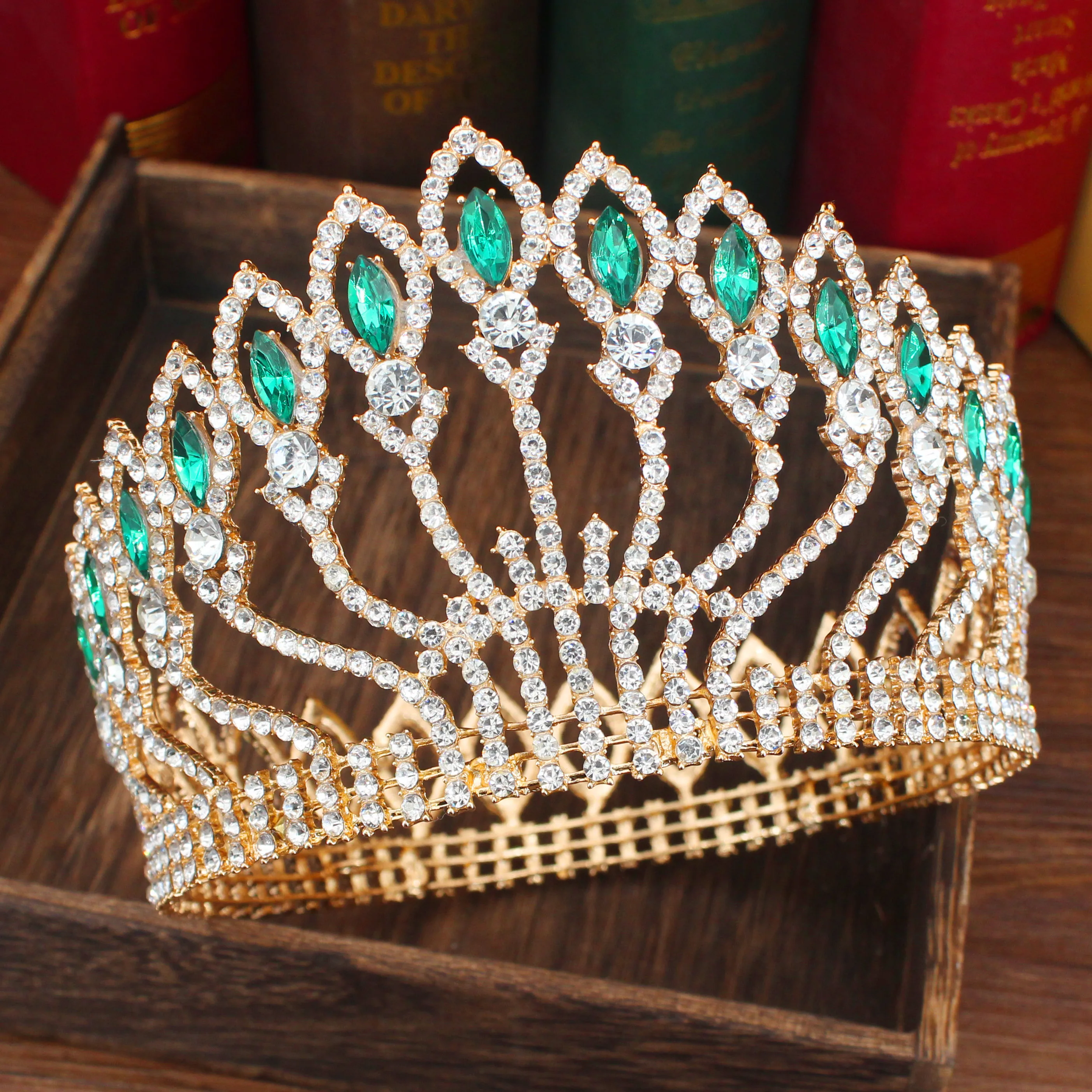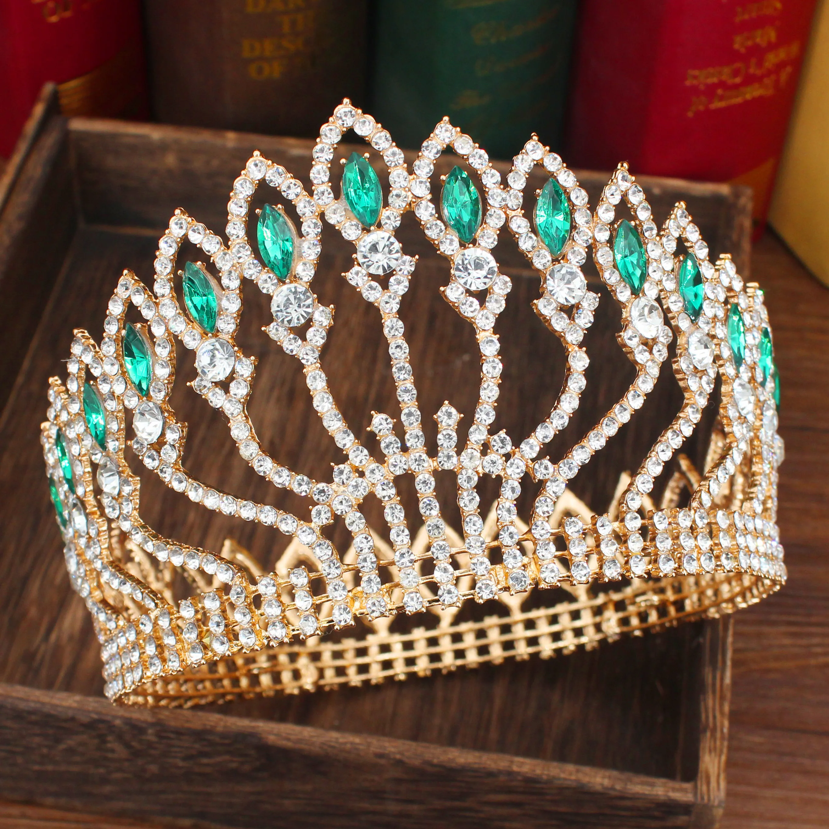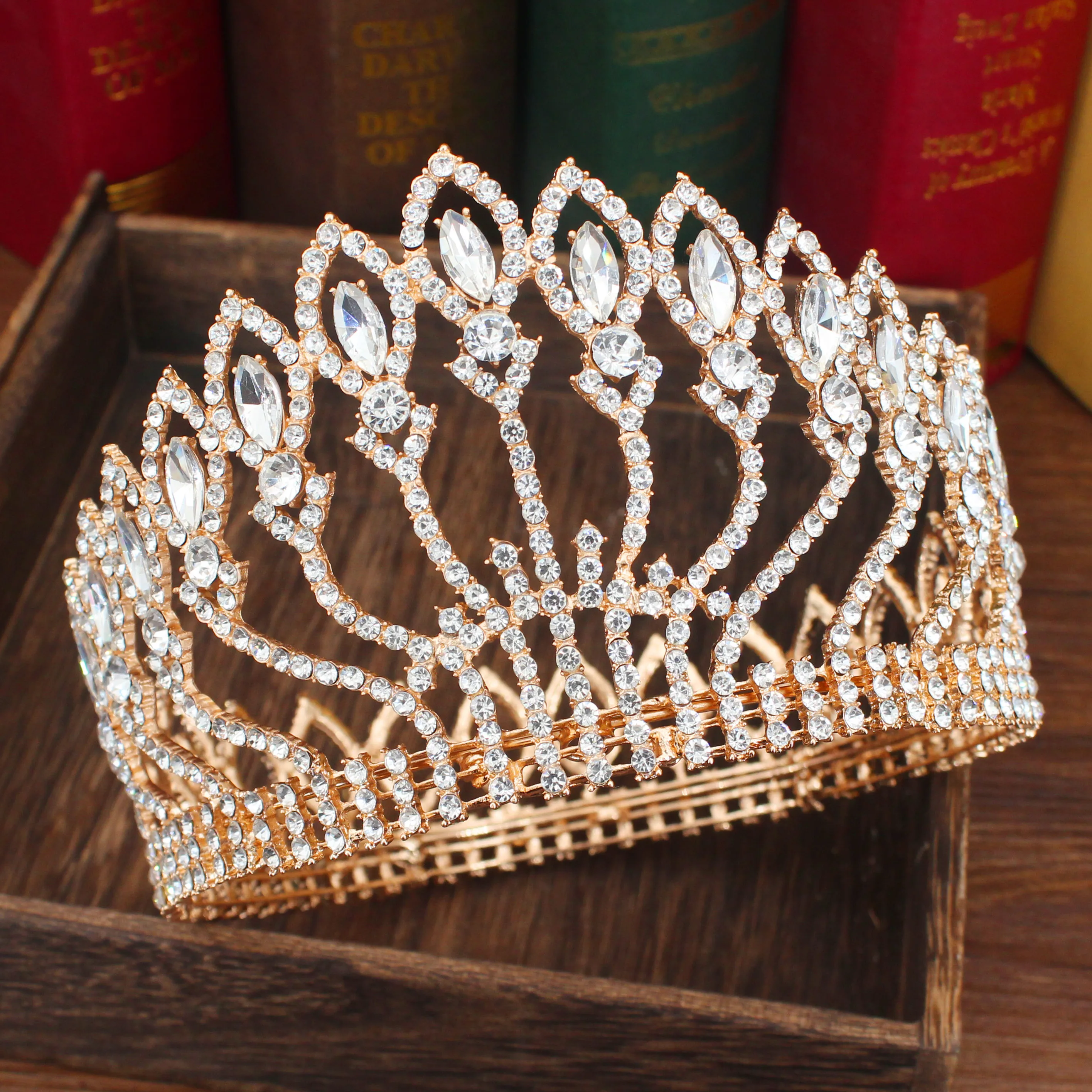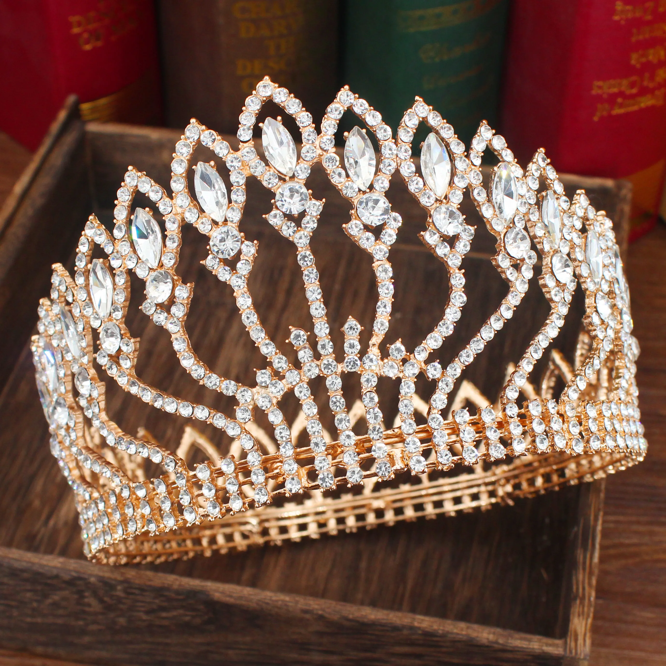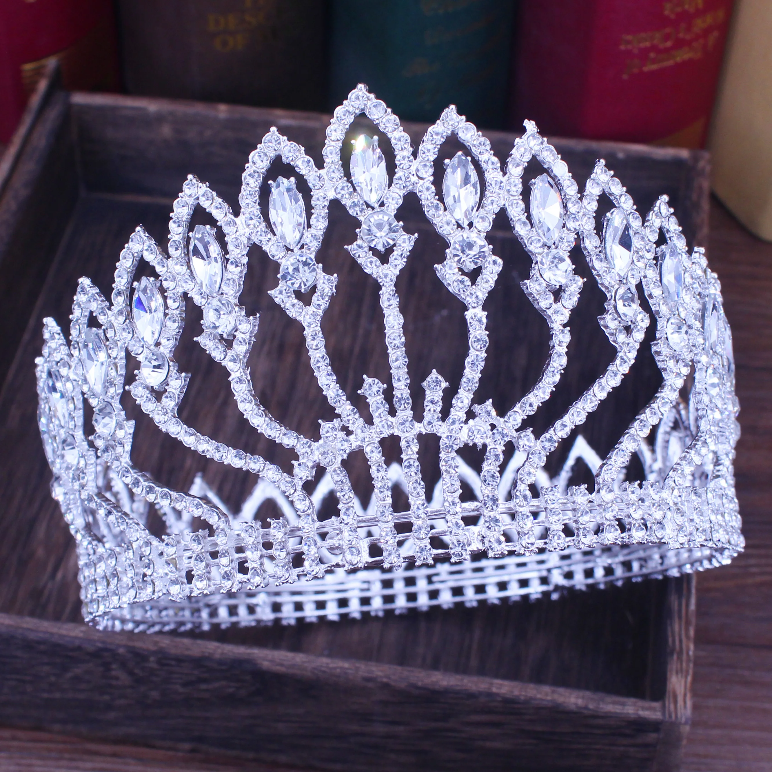 Роскошная сверкающая Хрустальная свадебная тиара в стиле барокко, корона для невесты, Женский диадема на выпускной вечер, головной убор невесты, украшения для волос, аксессуары Материал: хрусталь, стразы, сплав Размеры: высота: 3,9 дюймов, Диаметр: 6,1 дюймов Размеры: как на картинке