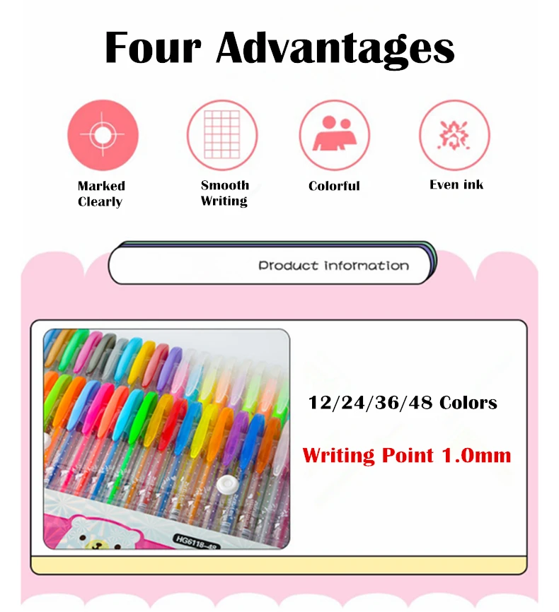 12/24/36/48/Набор цветных гелевых ручек набор блестящих гелевых ручек цвета для взрослых книг-раскрасок журналы Рисование художественные маркеры набор