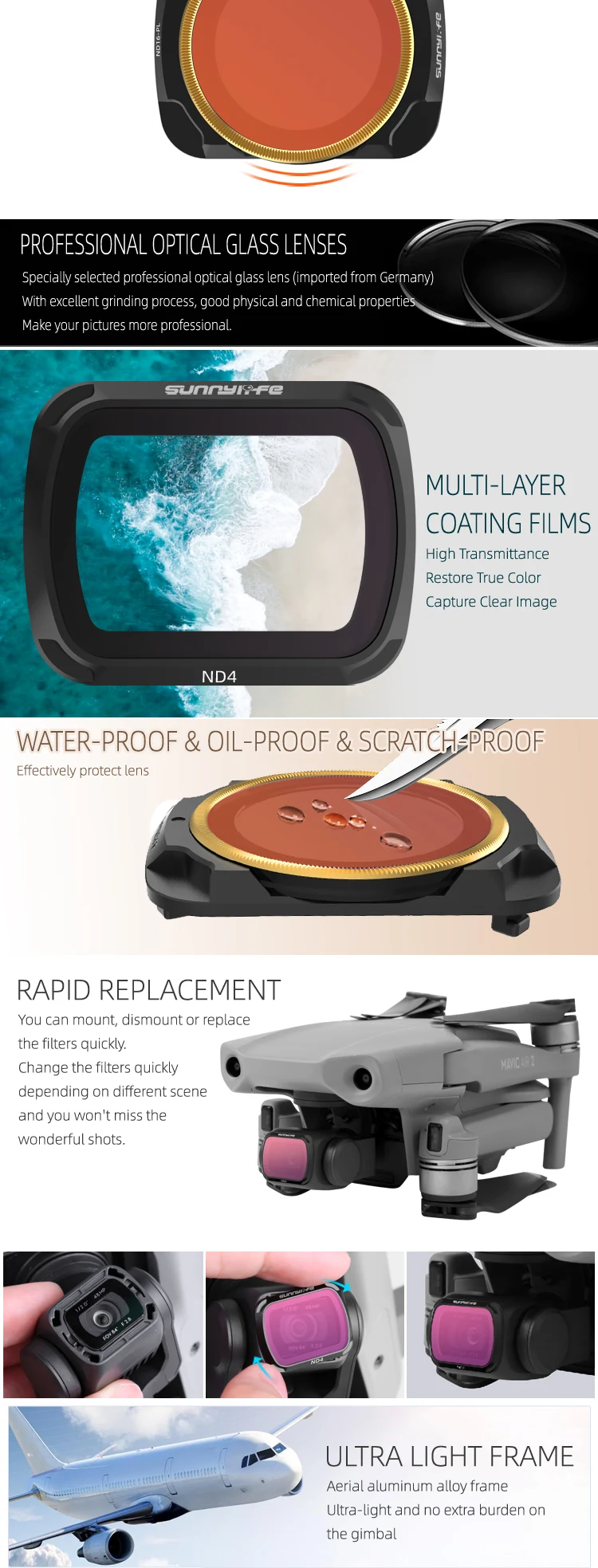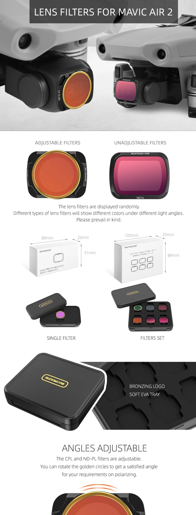 -Фильтры CPL и ND-PL регулируются. Вы можете повернуть золотые круги, чтобы получить удовлетворенный угол для ваших требований о поляризации.