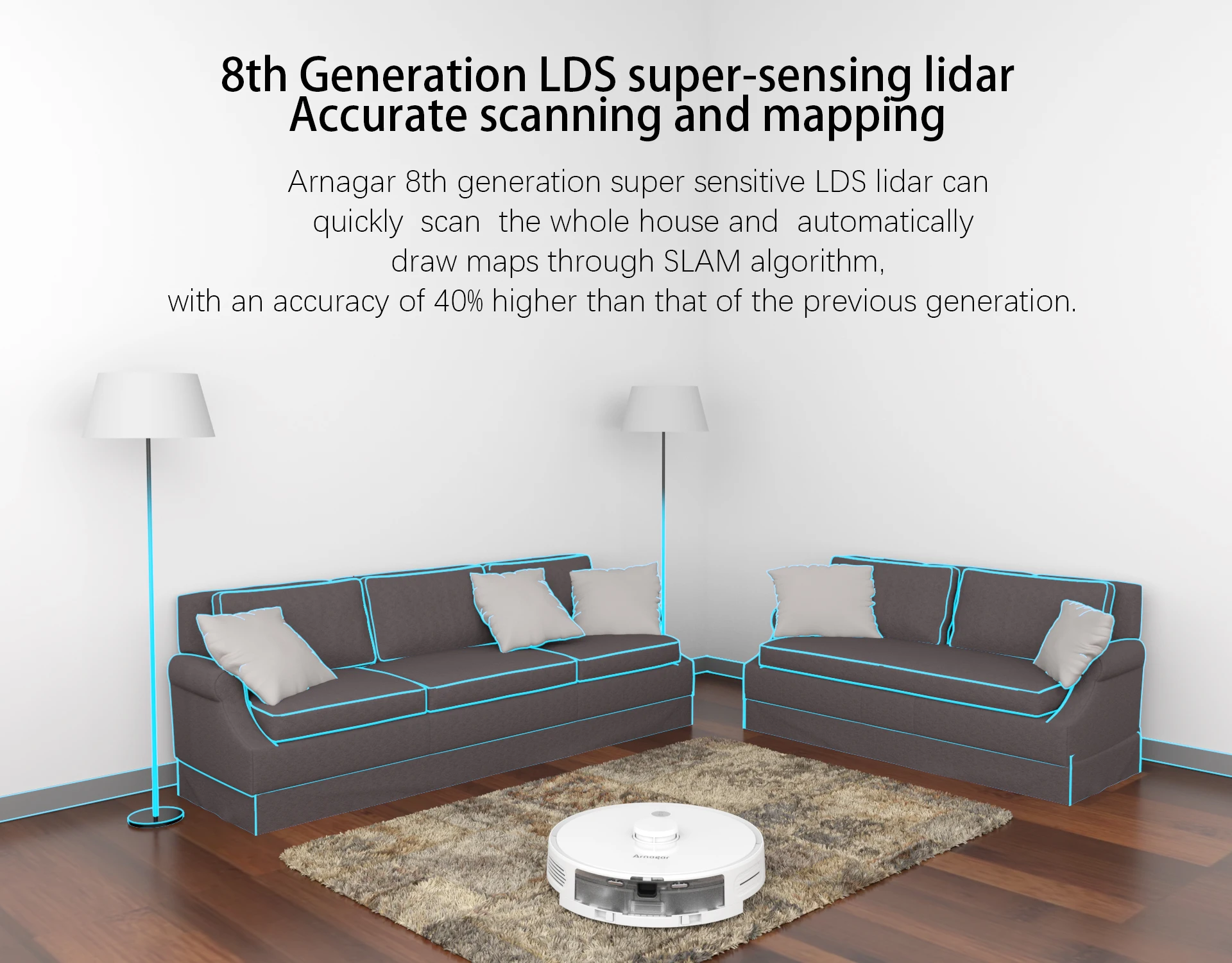 Суперчувствительный LD lidar 8-го поколения Arnager может быстро сканировать весь дом и автоматически рисовать карты с помощью алгоритма SLAM