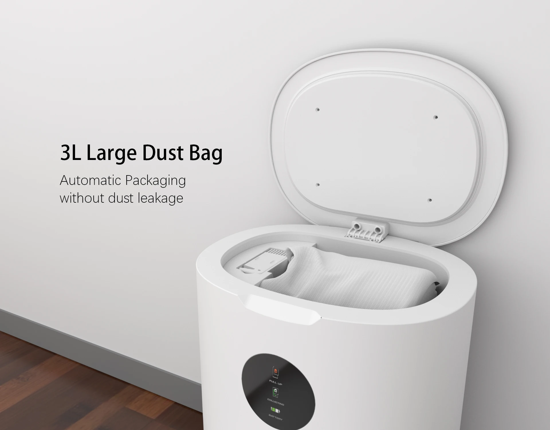 Он автоматически выпустит пылесборник и автоматически упаковывает пыль, когда пыль заполнена