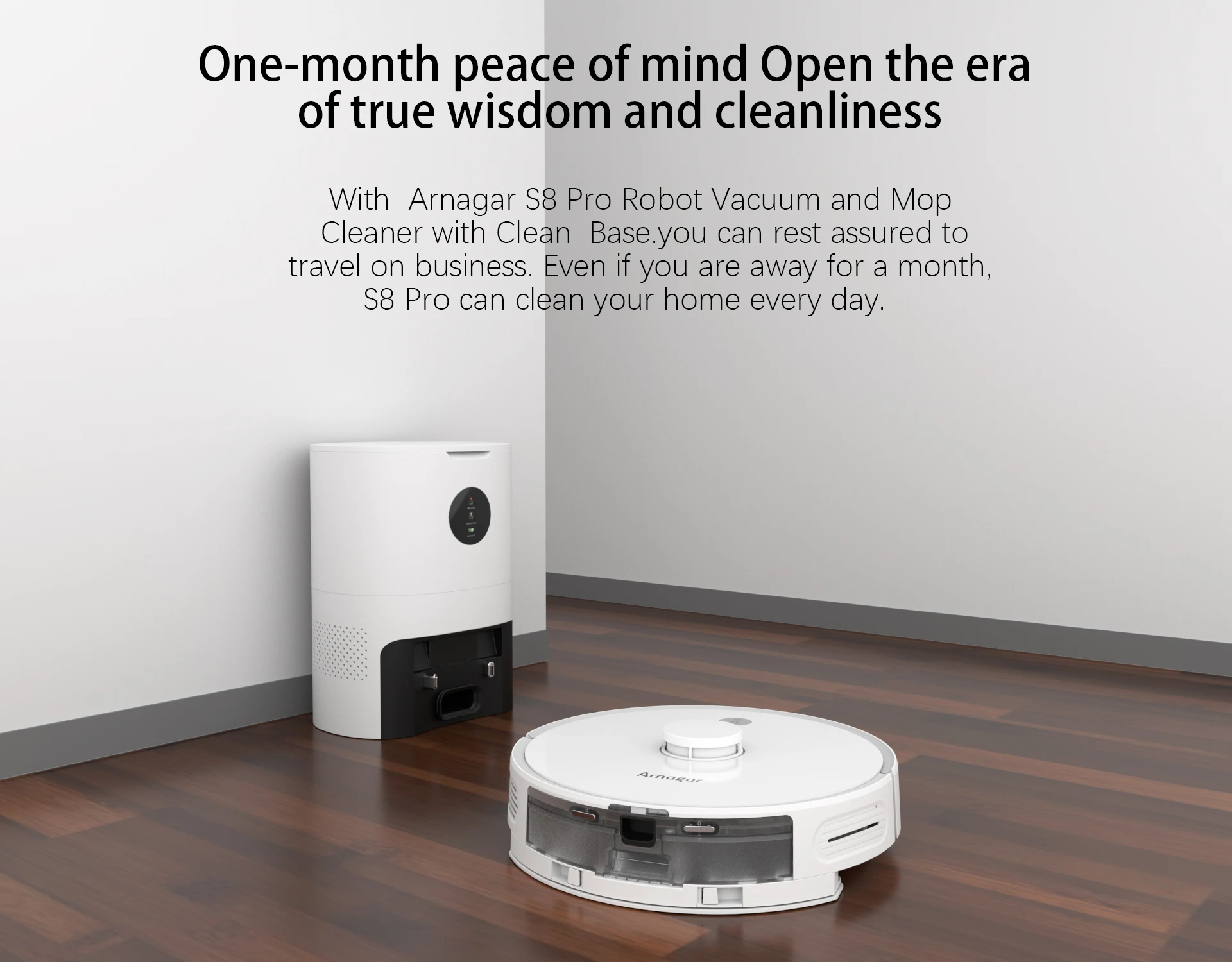 С роботом-пылесосом и шваброй Arnagar S8 Pro с чистым основанием. Вы можете быть уверены в путешествии по делам, даже если вы находитесь на месте в течение месяца, S8 Pro может убирать ваш дом каждый день