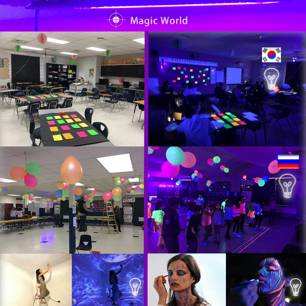 Дезодорирование, дезинфекция, стерилизация, удаление комаров Освещение для сцены, дня рождения, свадьбы Свечение акне вечерние темно аквариум краски тела флуоресцентный плакат Неоновое свечение отверждения Хэллоуин детектор собака кошка мочи Pet пятна кровать ошибка Отверждение клея, печать, дезинфекция, стерилизация, рост растений, медицина, эксперименты, сценическое представление и т. Д.