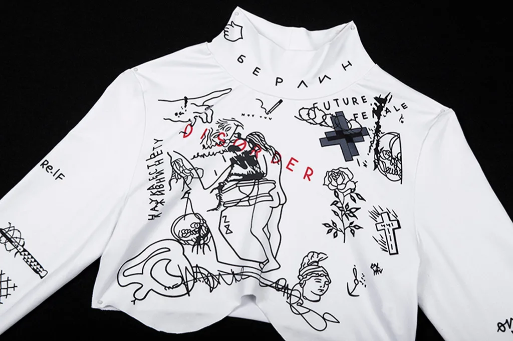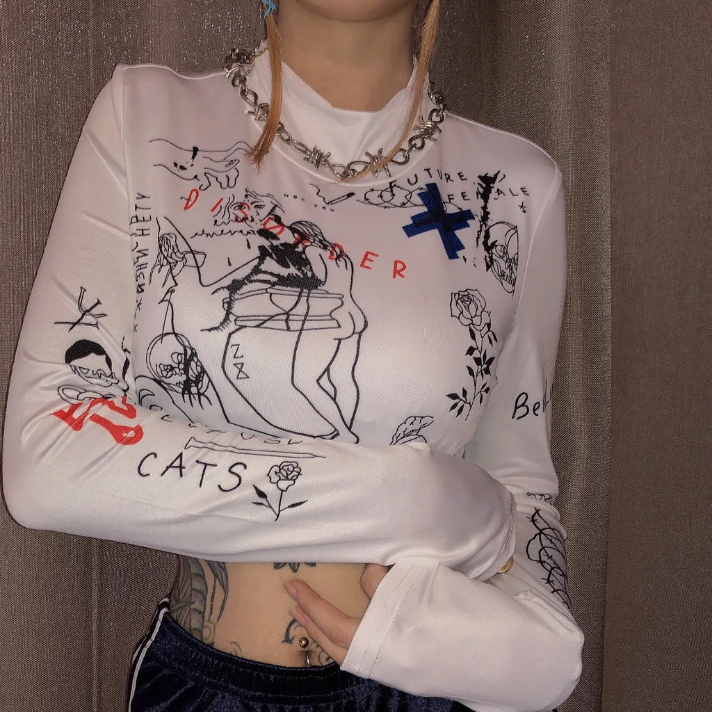 Женская блузка с длинным рукавом и круглым вырезом, сексуальный топ с буквенным принтом
