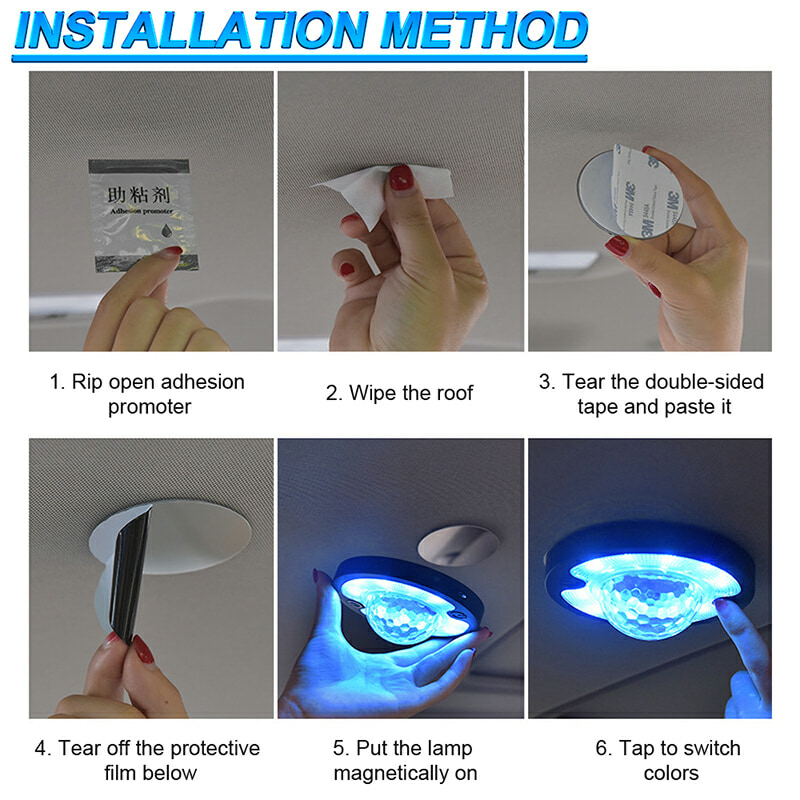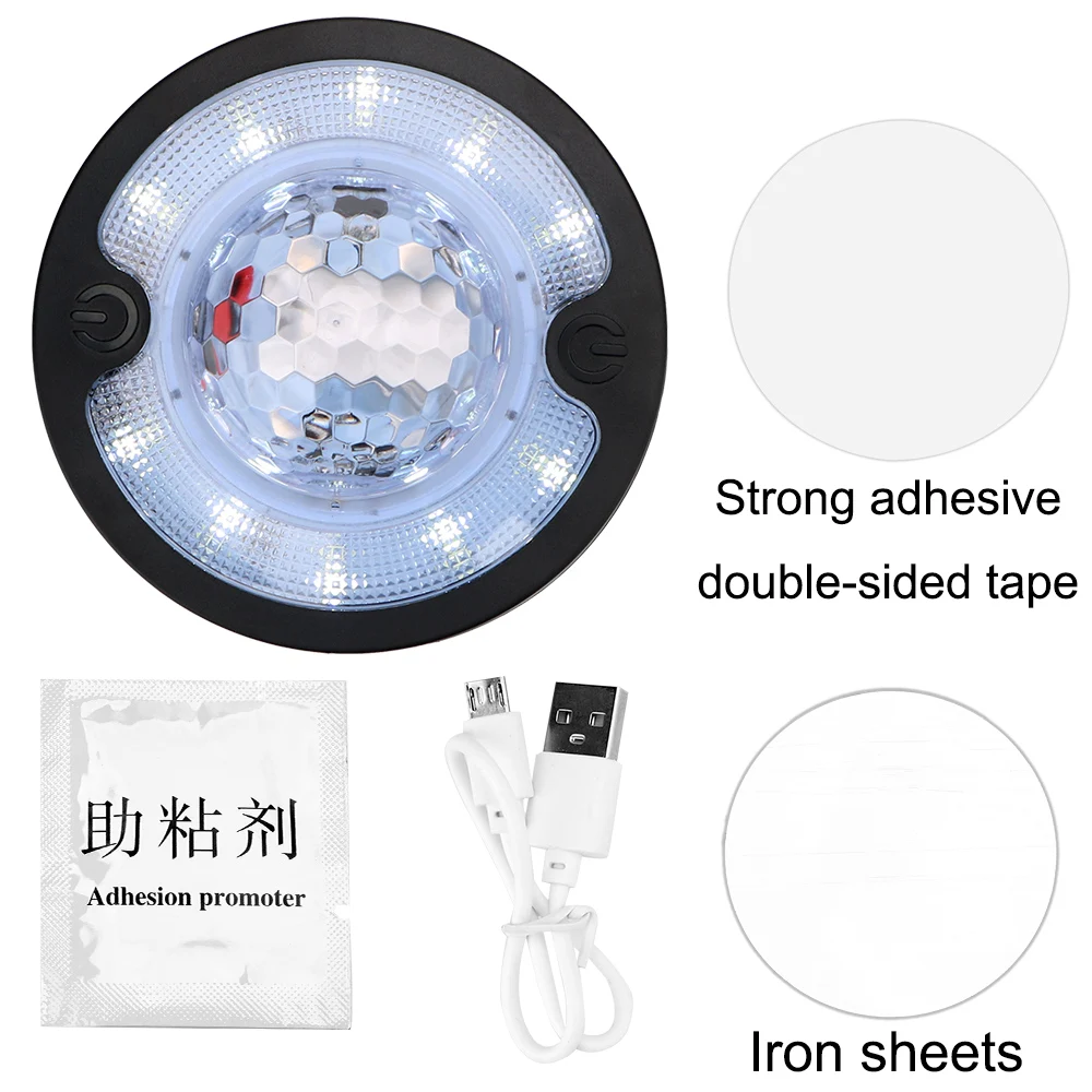 В комплект входит: 1 лампа, 1 кабель для передачи данных, 1 железный лист, 1 двусторонняя клейкая наклейка, 1 Акция адгезии