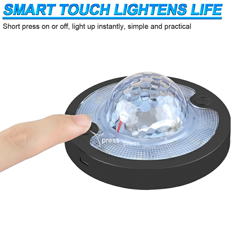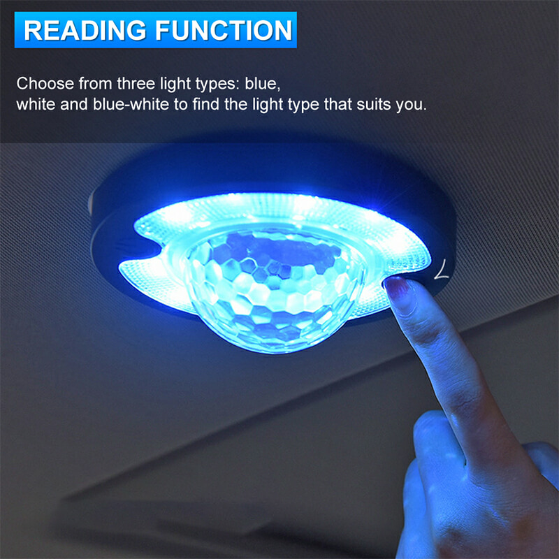 1. Слегка нажмите на переключатель, долго нажмите в течение 3 секунд, чтобы переключить Цвет света: синий свет, полный свет, белый свет