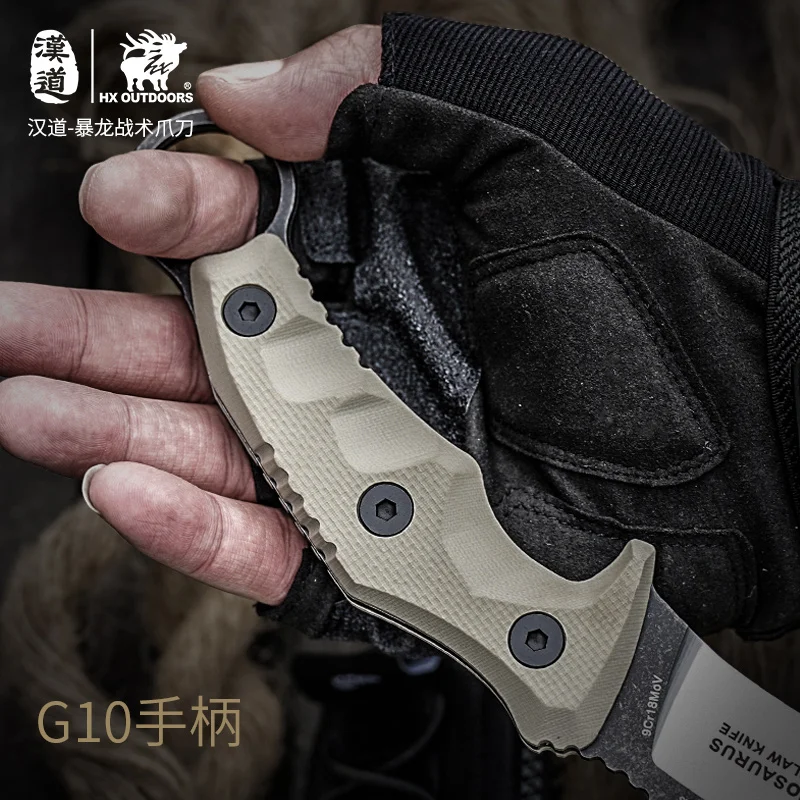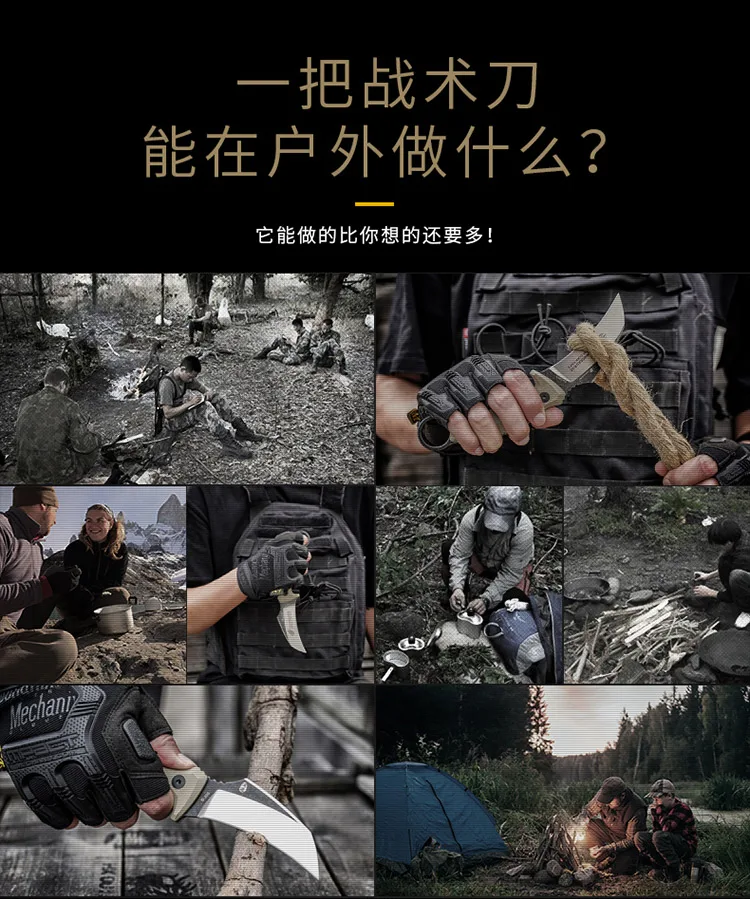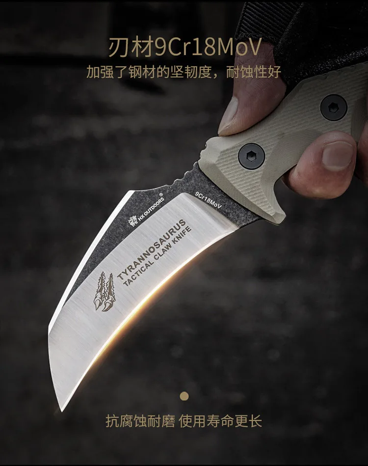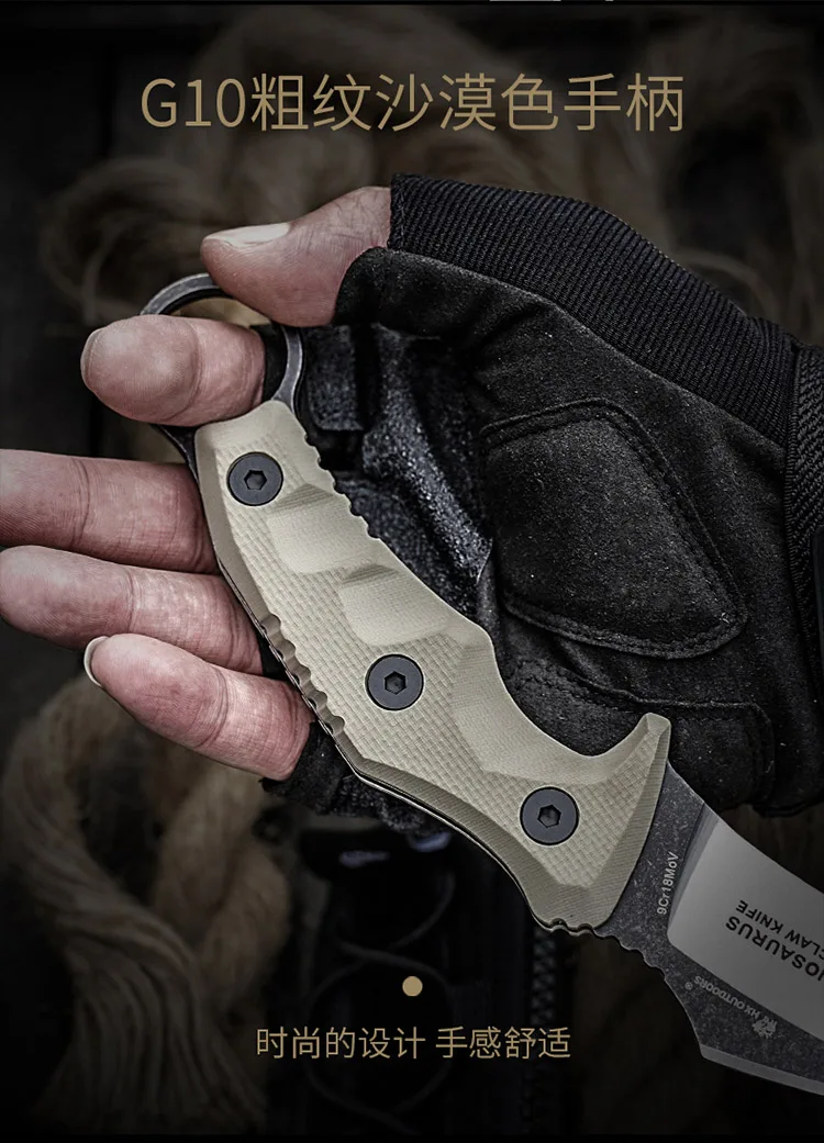 Full length: 22.5CMBlade length: 9CMBlade thickness: 3.8mmWeight: 252.5G (including knife cover)Blade material: 9cr18MOVHandle material: G10Hardness: 56-58hrcSurface treatment: stone wash