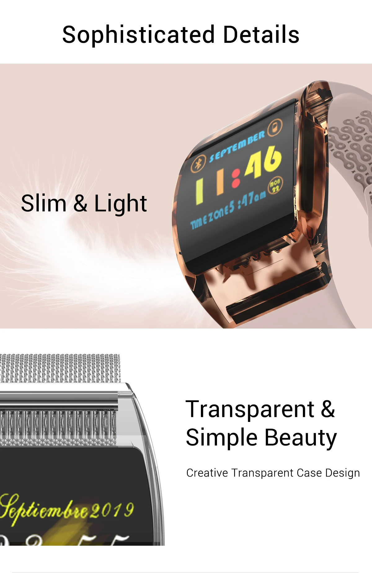 * Высокочувствительный сенсорный экран. Он может контролировать ваши шаги, пробег, калории и частоту сердечных сокращений в реальном времени. Поддерживает мониторинг сна.