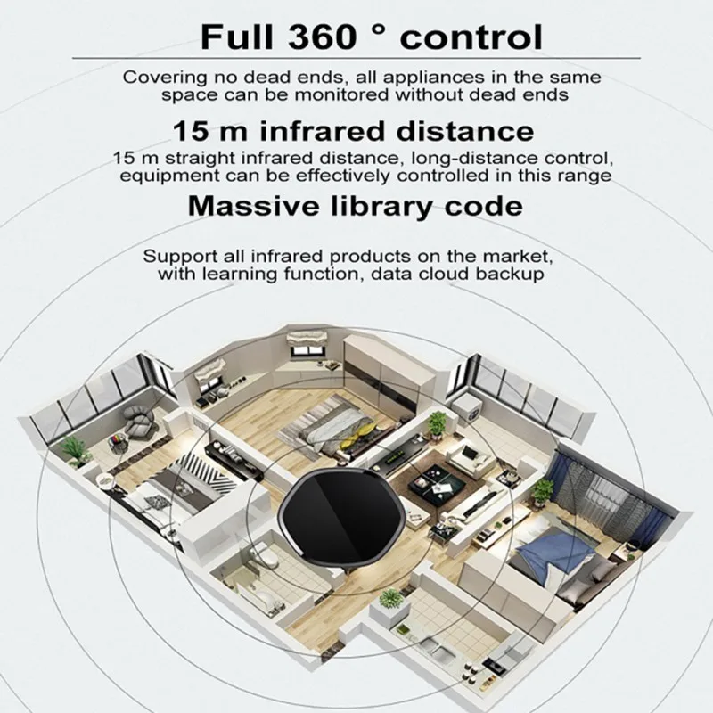 Поддерживает почти все устройства с ИК-управлением и поддерживает обучение частотному сигналу 38 кГц, включая кондиционер, телевизор, телеприставка, DVD, ИК электрический занавес и многое другое. С большой ИК-базой данных.