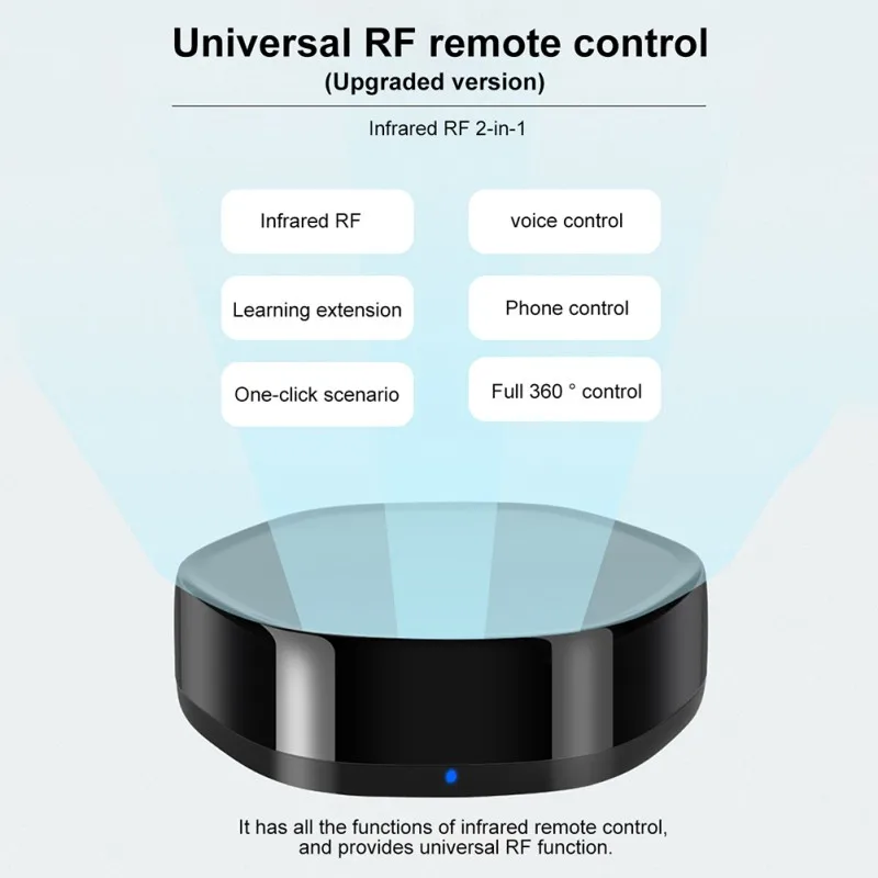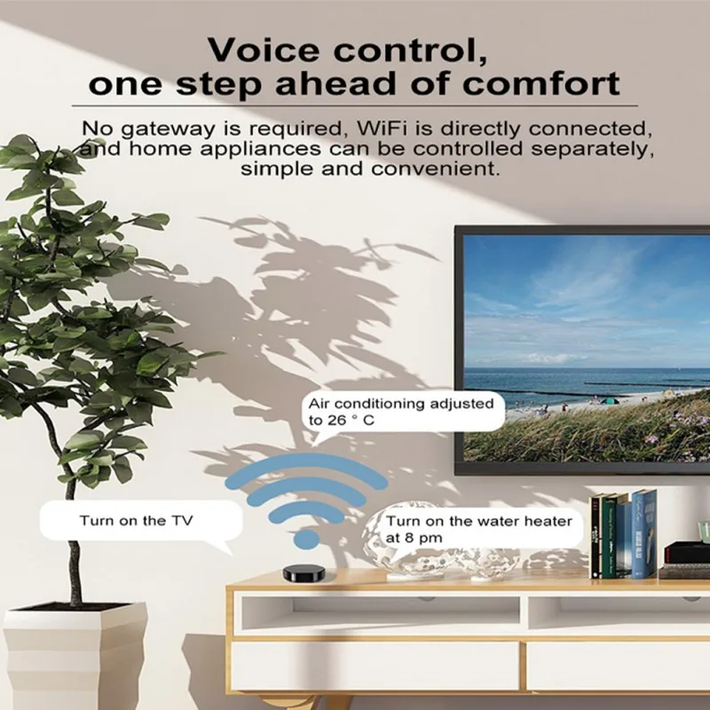 Совместим с Amazon Alexa, Google Home для голосового управления вашим телевизором, STB, кондиционером и вентиляторами. Устройство поддерживает только 2,4G WiFi.