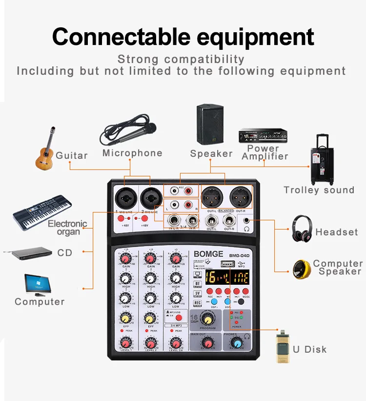 4 канальный микшер аудио интерфейс dj микшерный пульт караоке с включающим в себя гарнитуру блютус и флеш-накопитель usb с питанием от usb и зарядное устройство для мобильных устройств