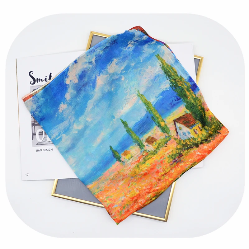 70 см * 70 см женский шелковый шарф с принтом Винсента Ван Гога и маслом женские шали для девушек бандана для волос