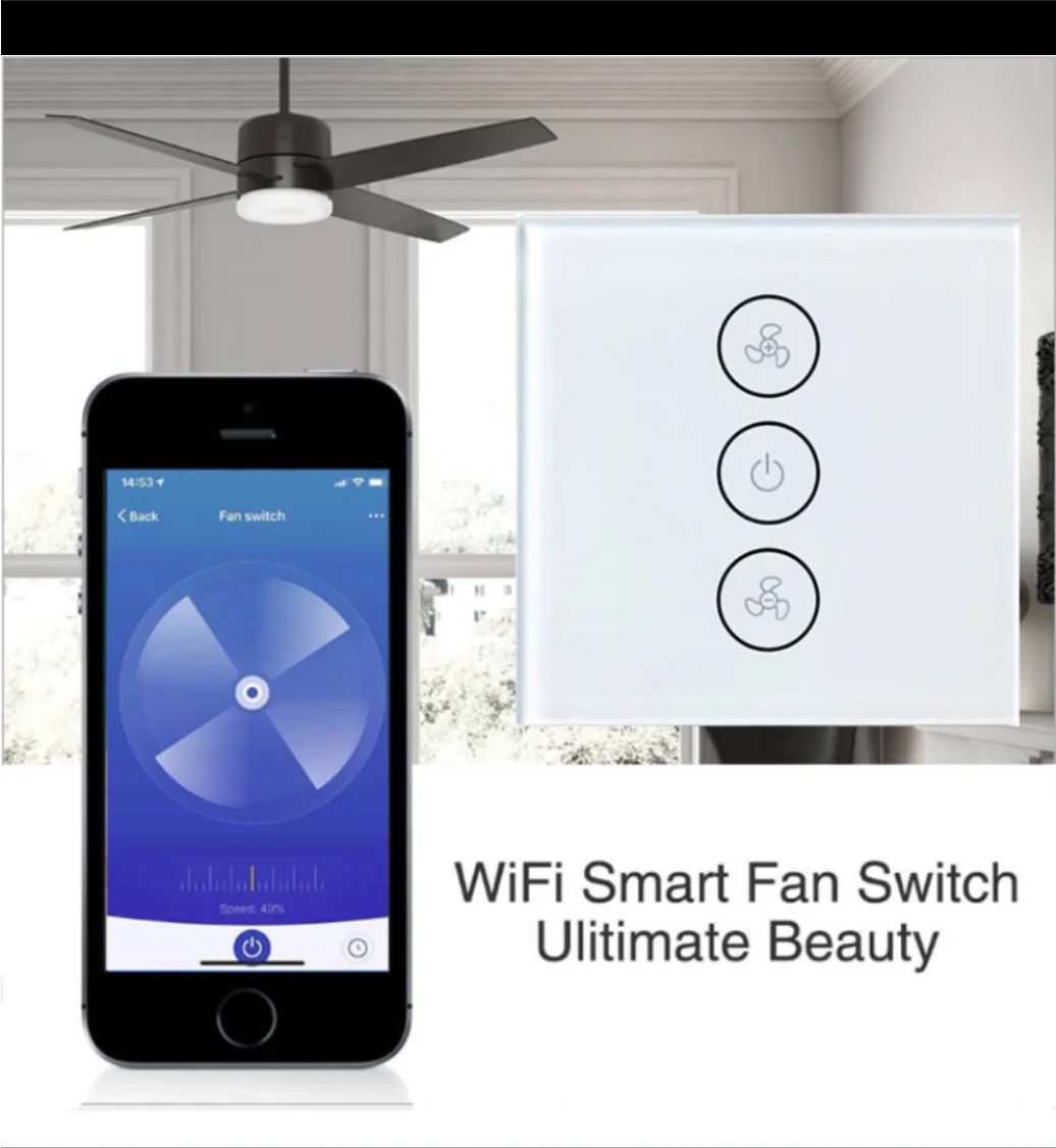 MEKISS smart fan switch WIFI подключение приложение дистанционное управление совместимость с Alexa Голосовое управление стандарт ЕС AC100-240V переключатель