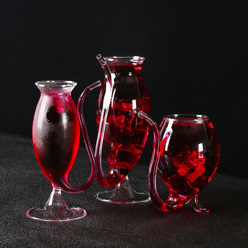 Прозрачная термостойкая стеклянная чашка для винного сока вампиров с соломенной трубкой для дома WXV распродажа