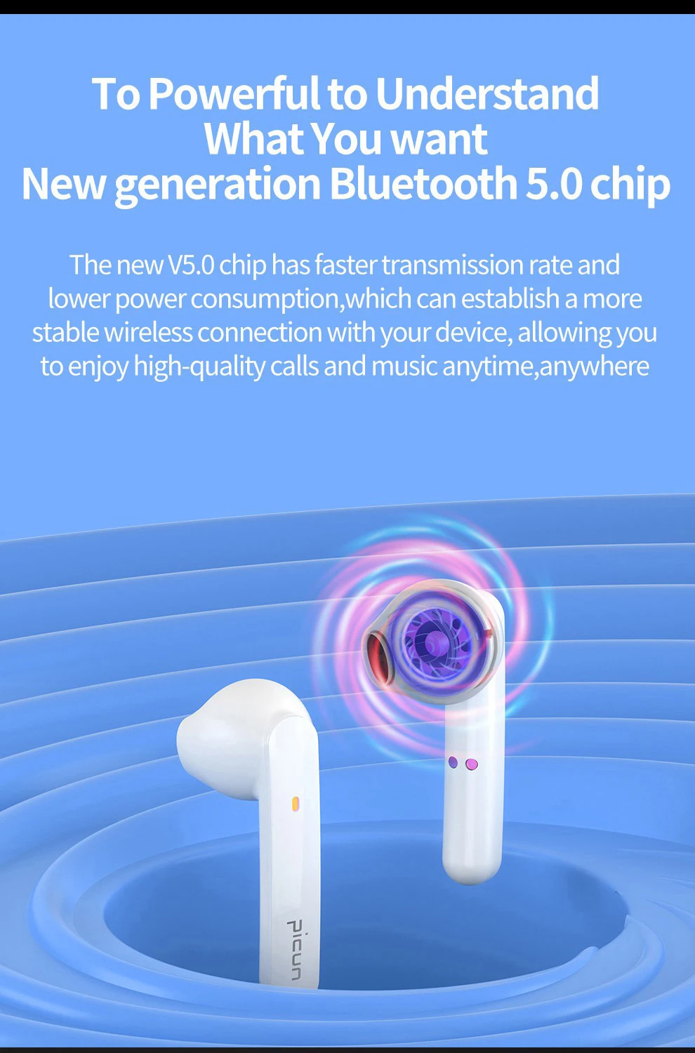 Мощный, чтобы понять, что вы хотите нового поколения Bluetooth 5,0 чип. Новый чип V5.0 имеет скорость быстрой передачи и низкое энергопотребление, что позволяет установить более стабильное беспроводное соединение с вашим устройством, позволяя вам наслаждаться высококачественными звонками и музыкой в любое время и в любом месте В сочетании с профессиональной настройкой био-диафрагма 10 мм показывает звук, как это живое шоу.