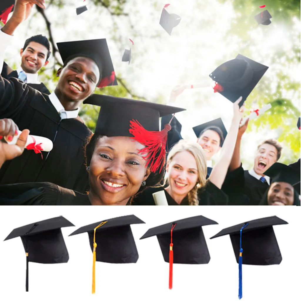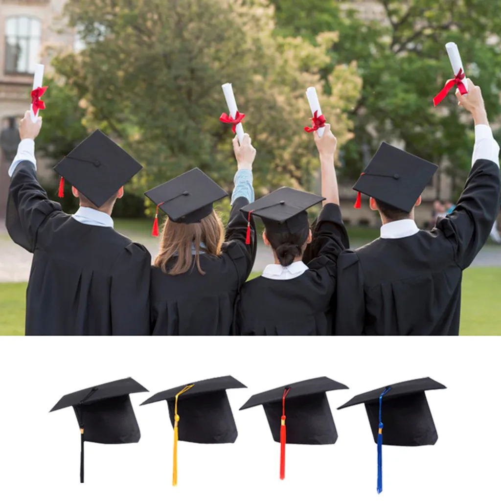 Регулируемая Черная кепка для выпускного с кисточкой для взрослых, аксессуар для Маскарадного платья.